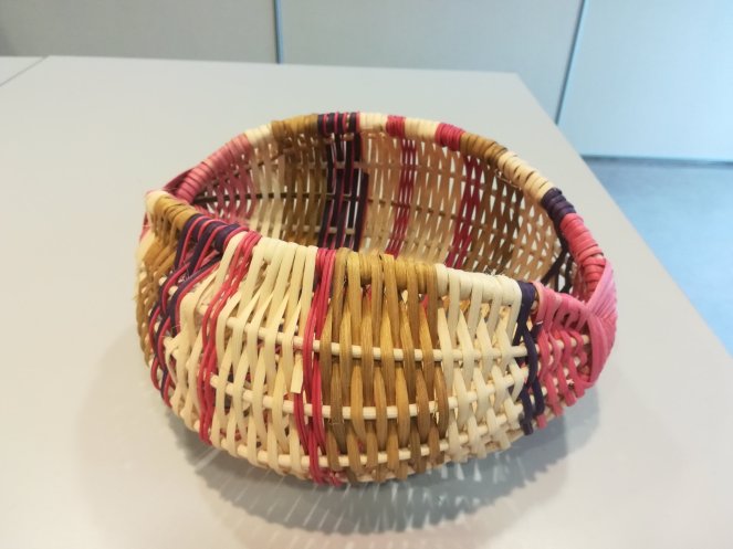 Françoise est devenue spécialiste de la corbeille sur arceaux tressée avec de la moelle et de l’éclisse de rotin. Et toujours avec ce bel assortiment de couleurs 🙂