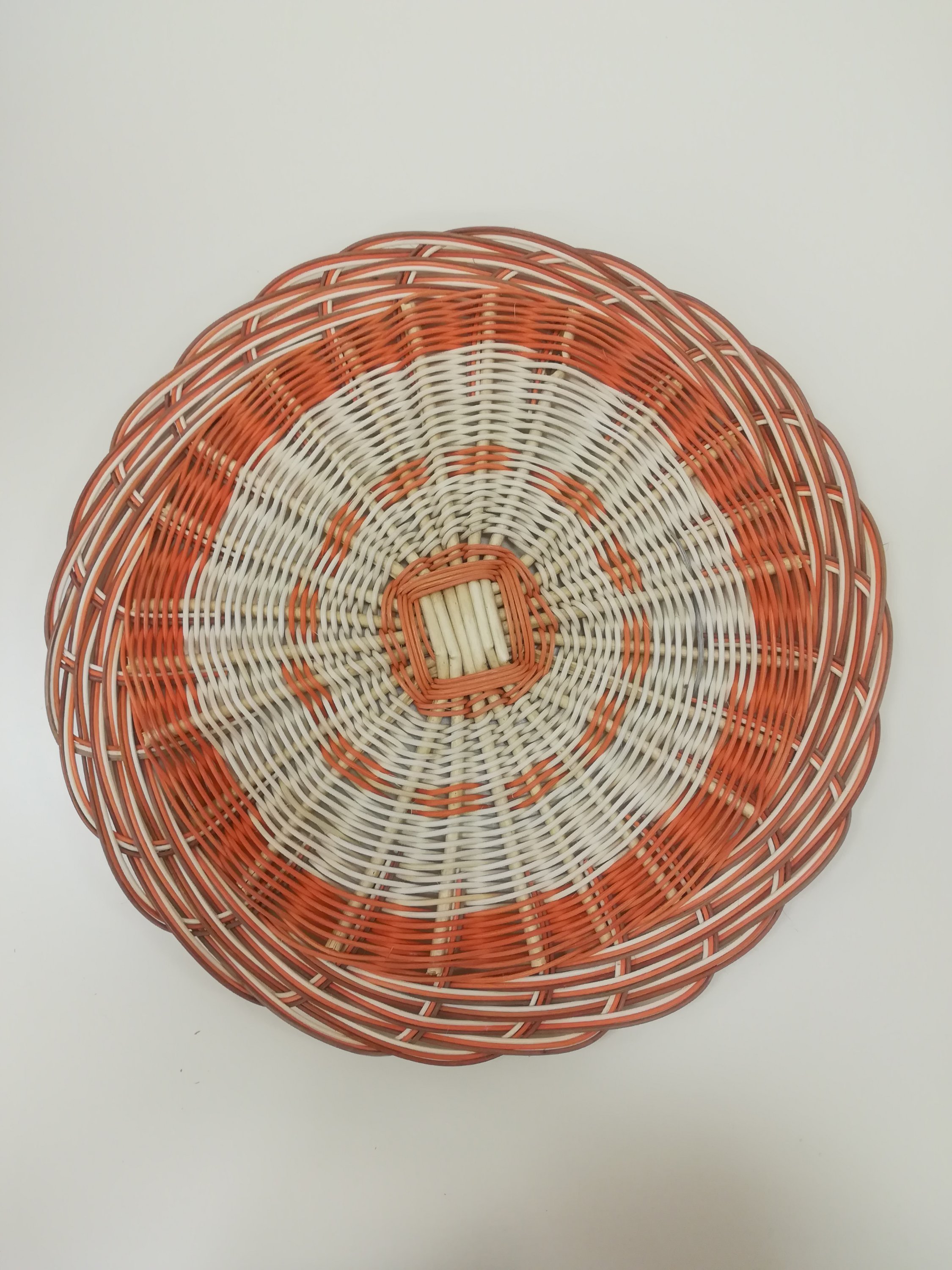 La panière à linge de Fanny a enfin retrouvé un couvercle ! En reprenant l’armature de l’ancien, Fanny a tressé en super avec de la moelle de rotin naturelle et orange. Et afin de retrouver le diamètre initial, elle a terminé par une jolie bordure Madère.