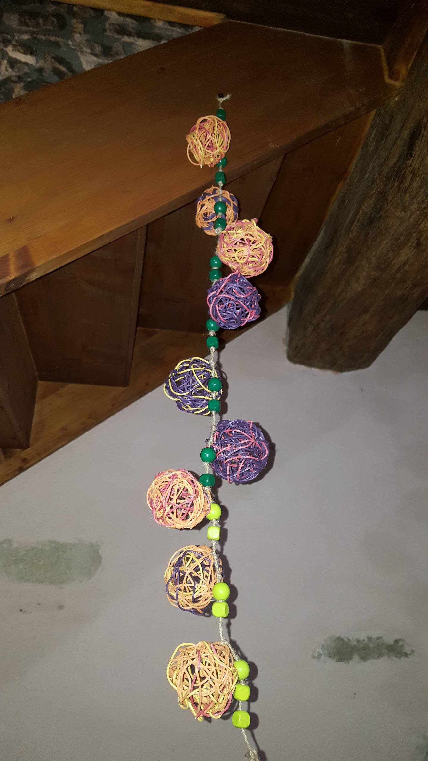 Nelly s’est mise aux boules en rotin avec toutes les chutes accumulées. Elle en a fait une jolie guirlande pour décorer la maison !