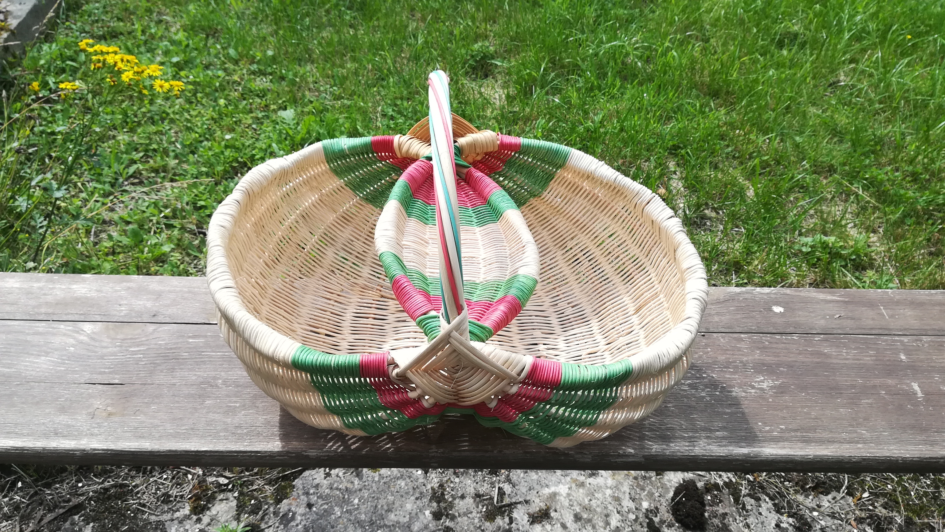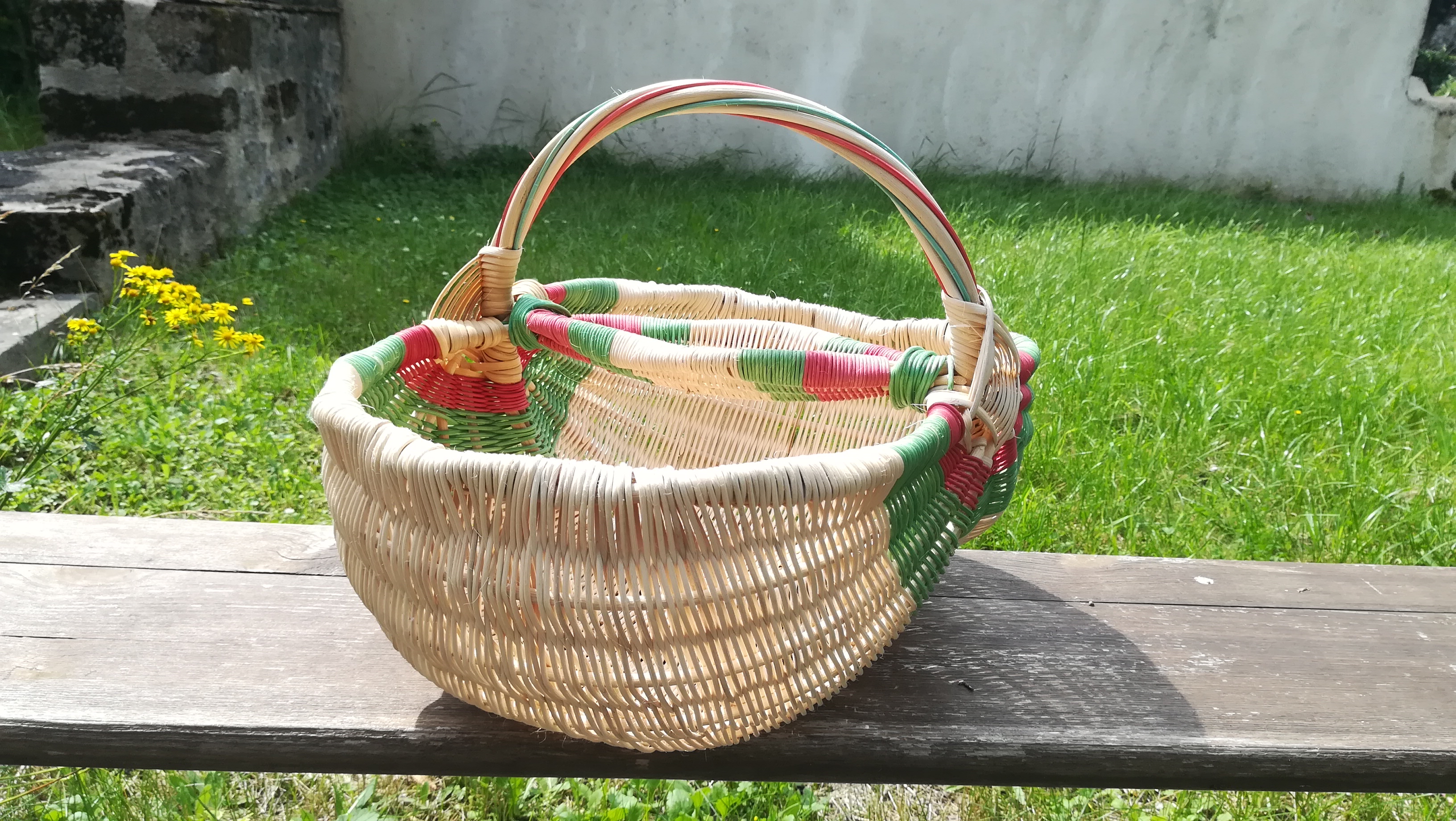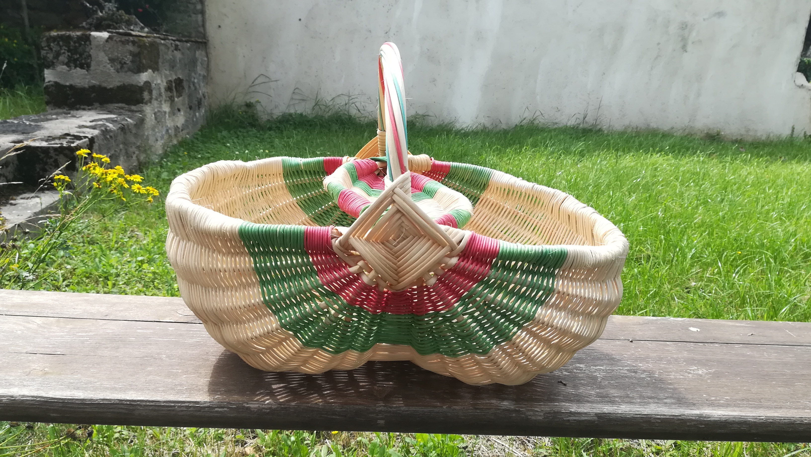 Francis récidive avec un panier sur arceaux avec porte sécateur inclus 🙂 Joli travail, de longue haleine, en moelle de rotin.