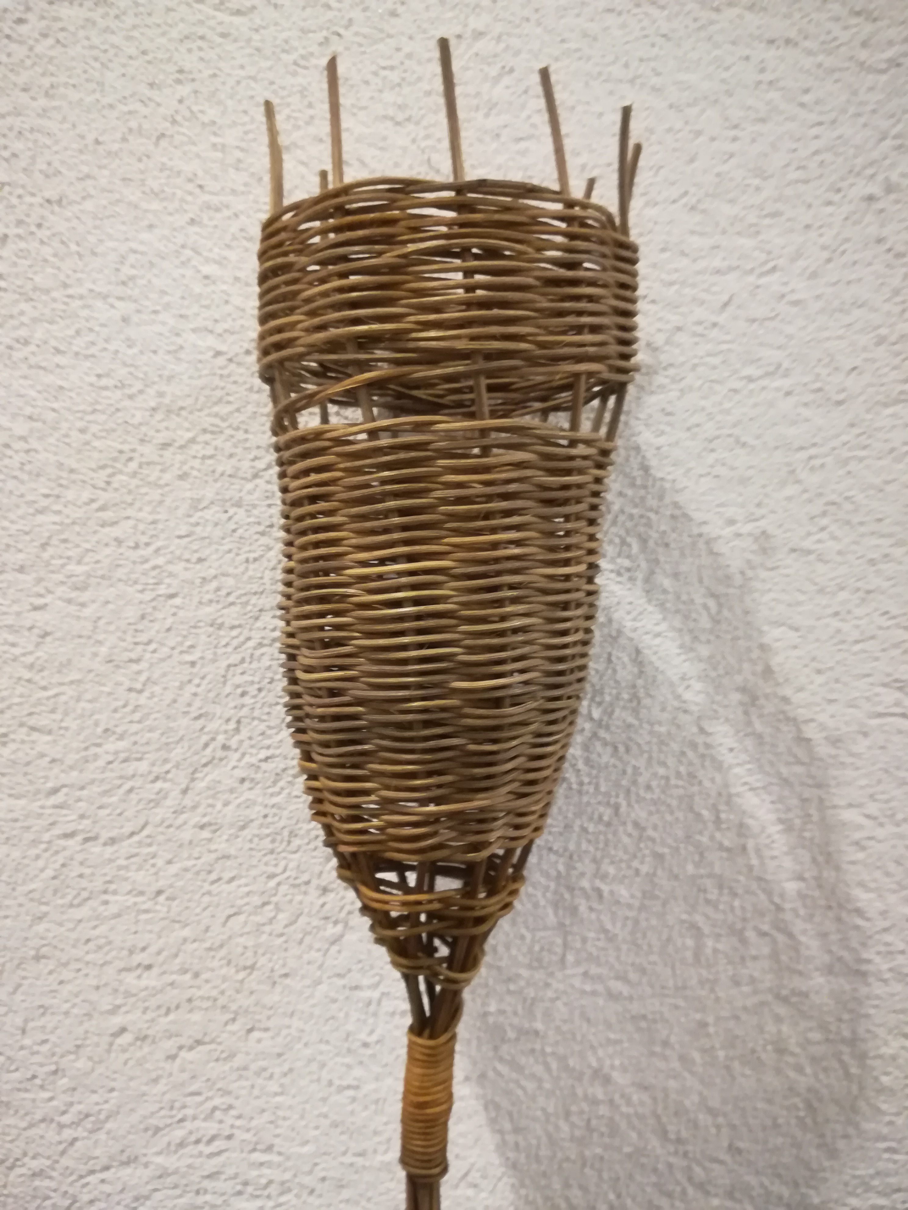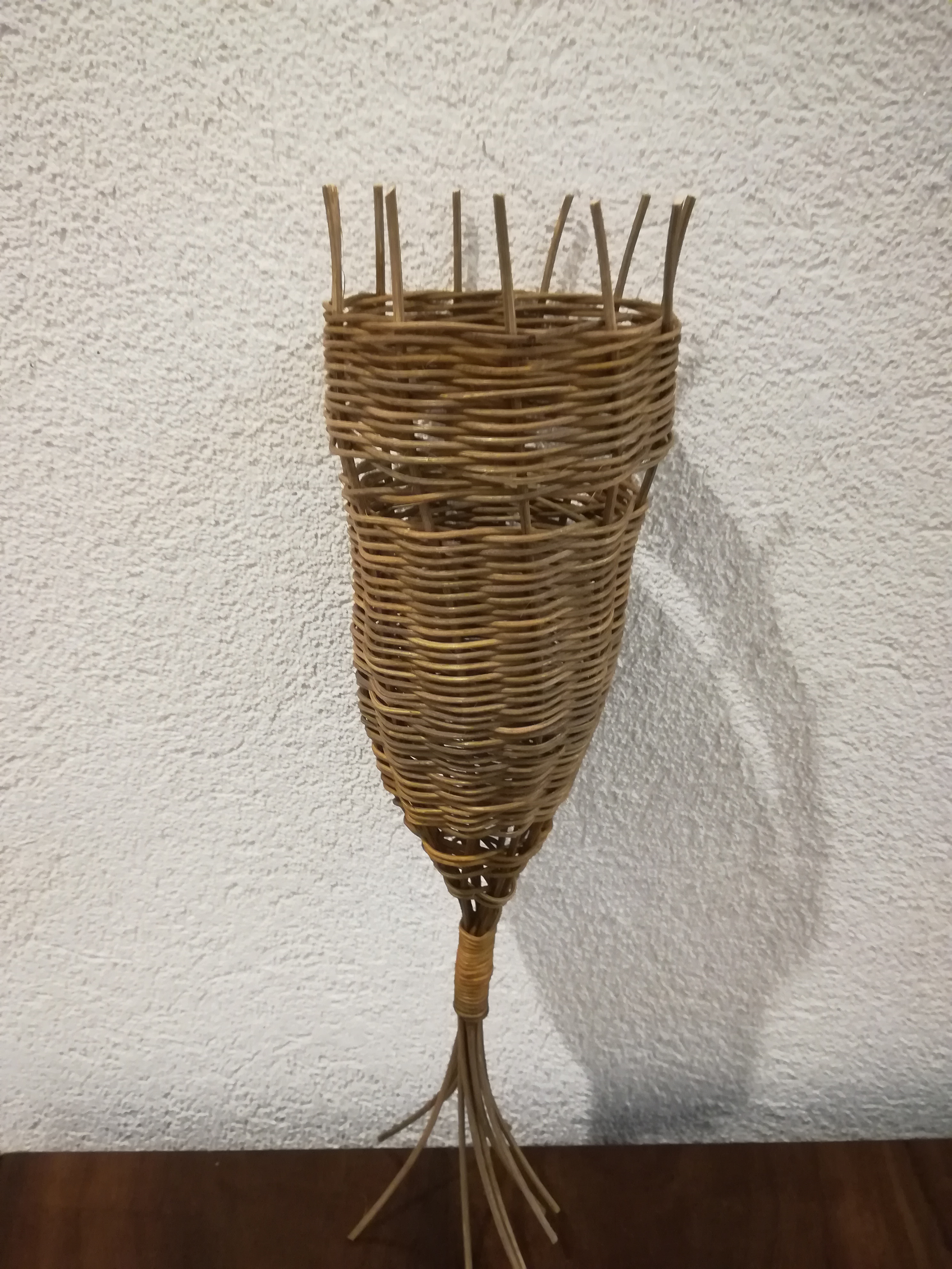 Pour sa première à l’atelier de vannerie, Naciba a réalisé ce cône tout en moelle de rotin. Une fois accroché dans la cuisine, elle aura ses échalottes à disposition dans un contenant original 🙂