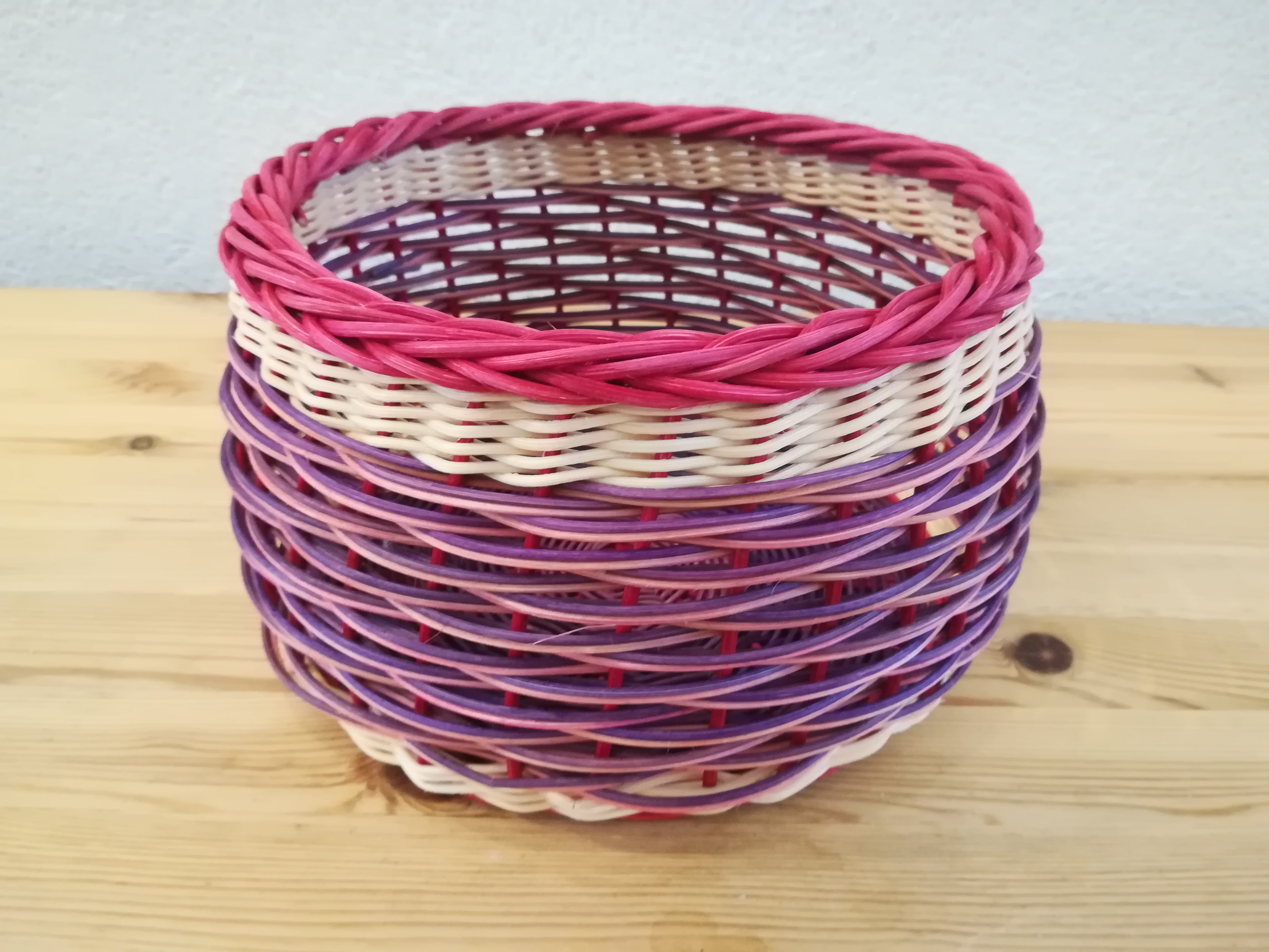 Une nouvelle petite corbeille faite par Nelly toute en moelle de rotin. Elle a tressé en super puis en planchette décalée pour un effet spiralée.