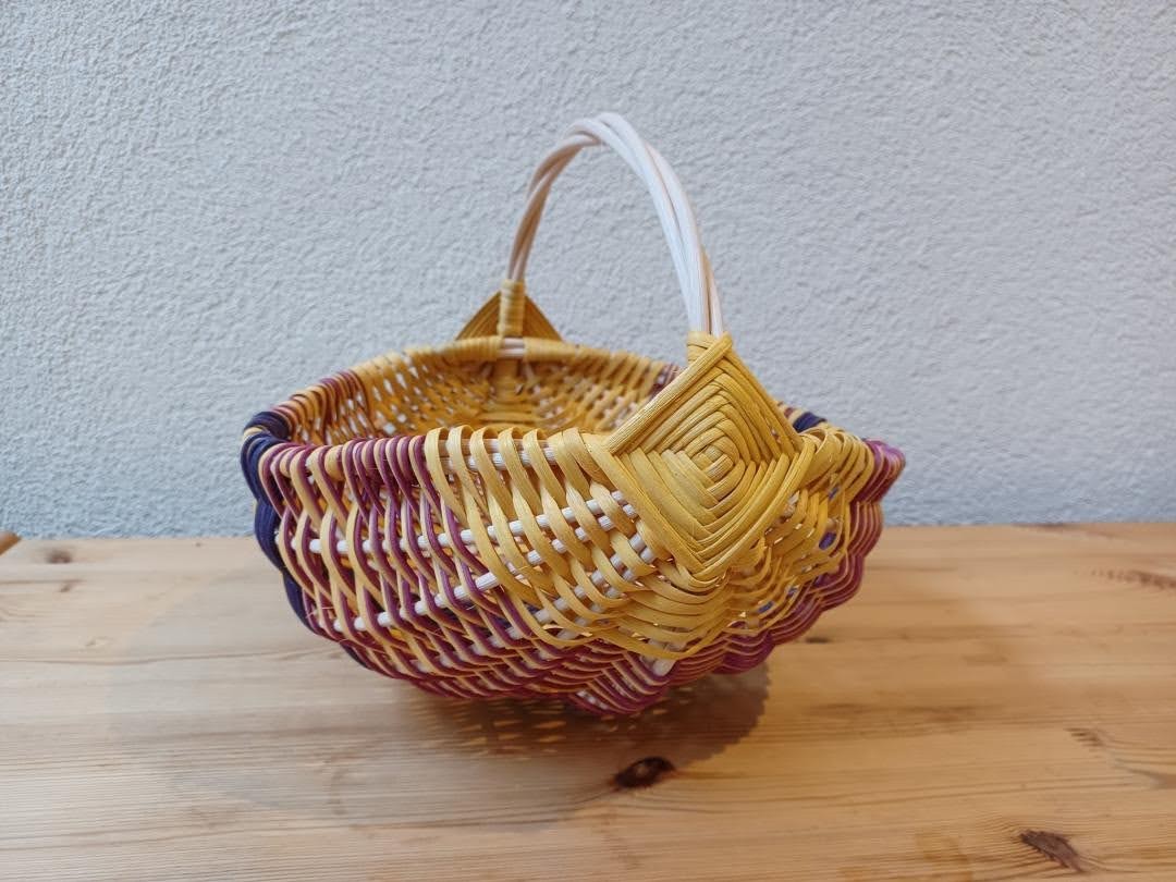 Après la corbeille sur arceaux, Nelly enchaine avec le panier ! Elle a alterné tressage en éclisse et en moelle de rotin. Encore un cadeau prêt à offrir 🙂