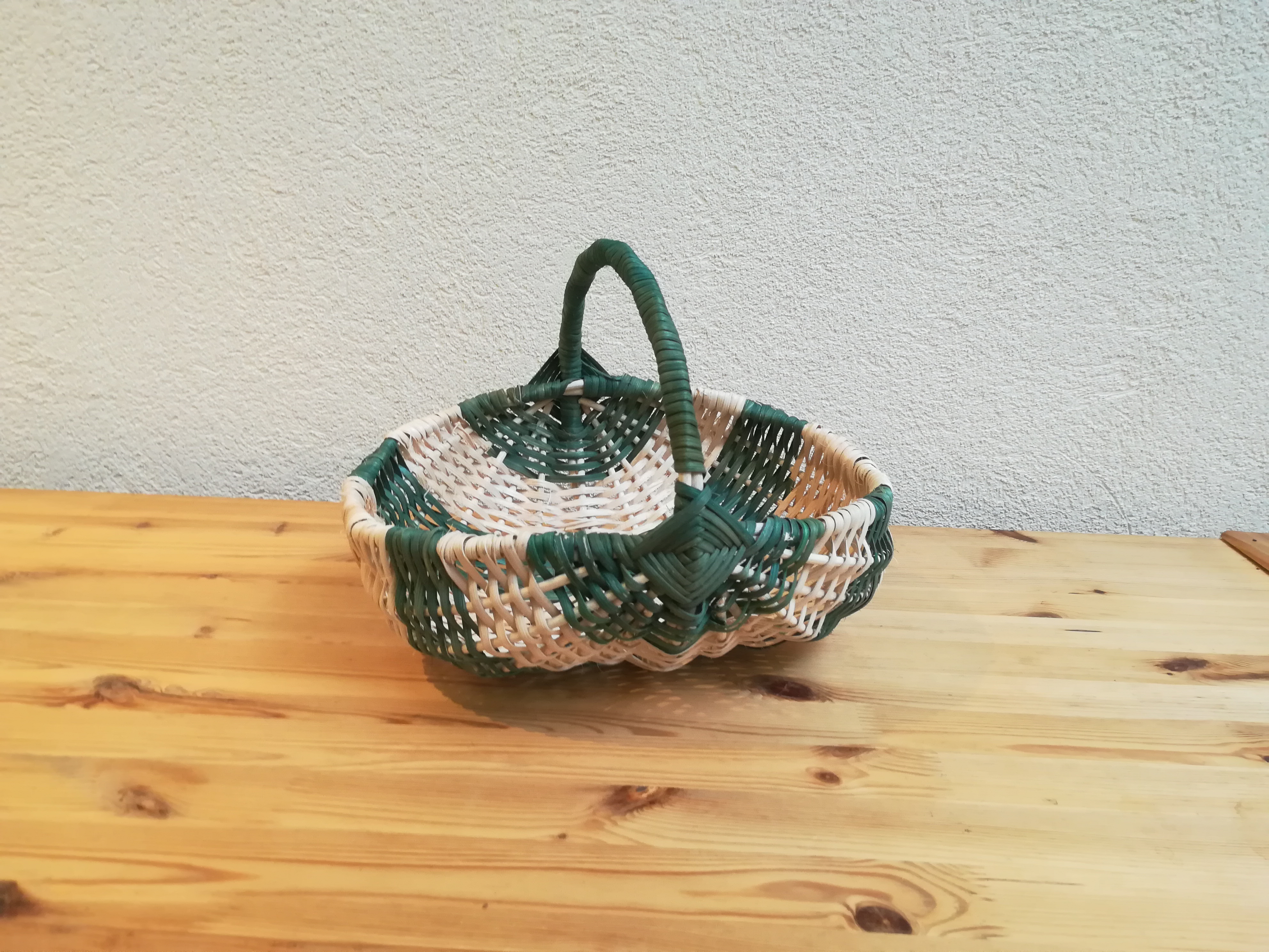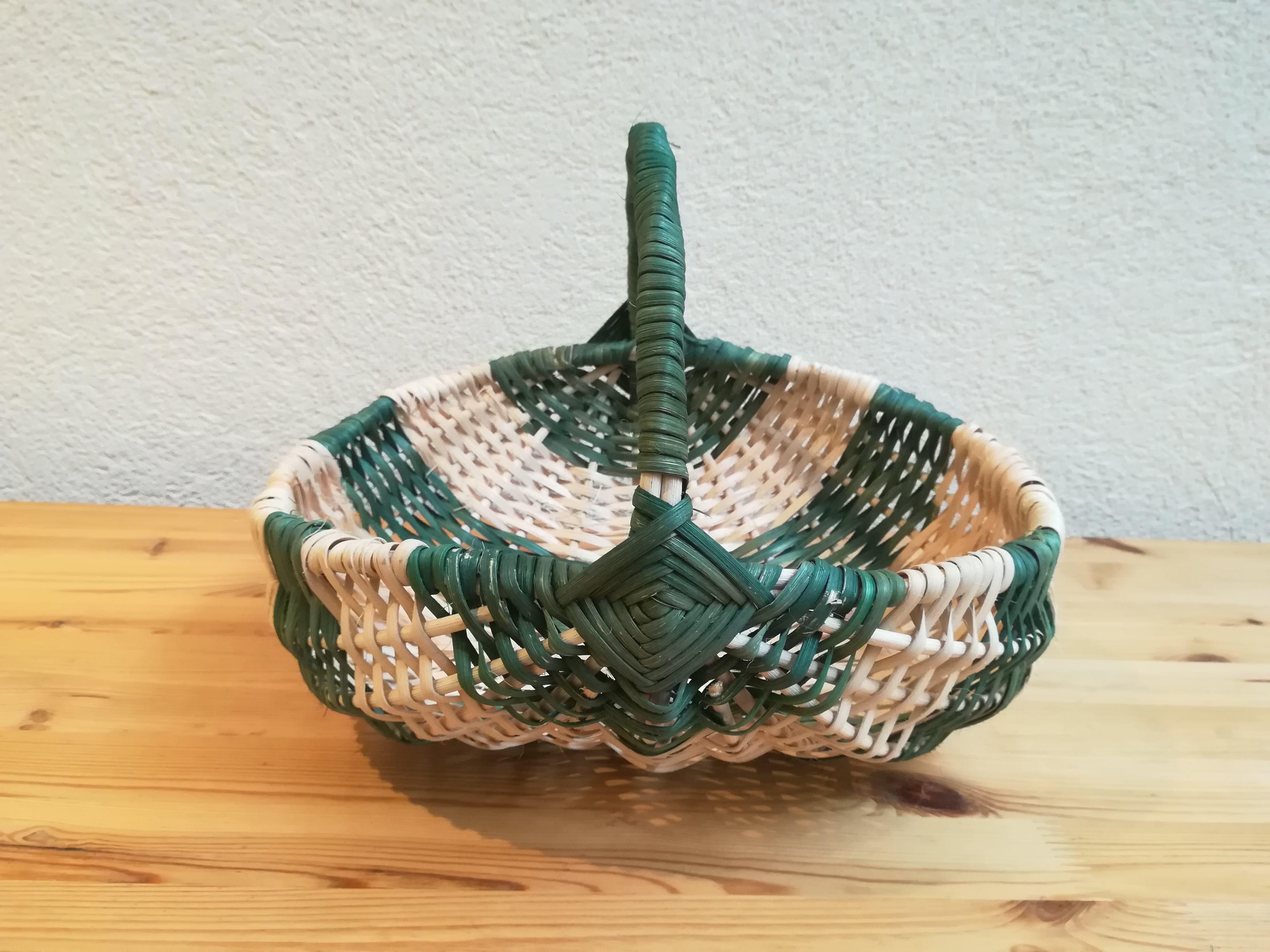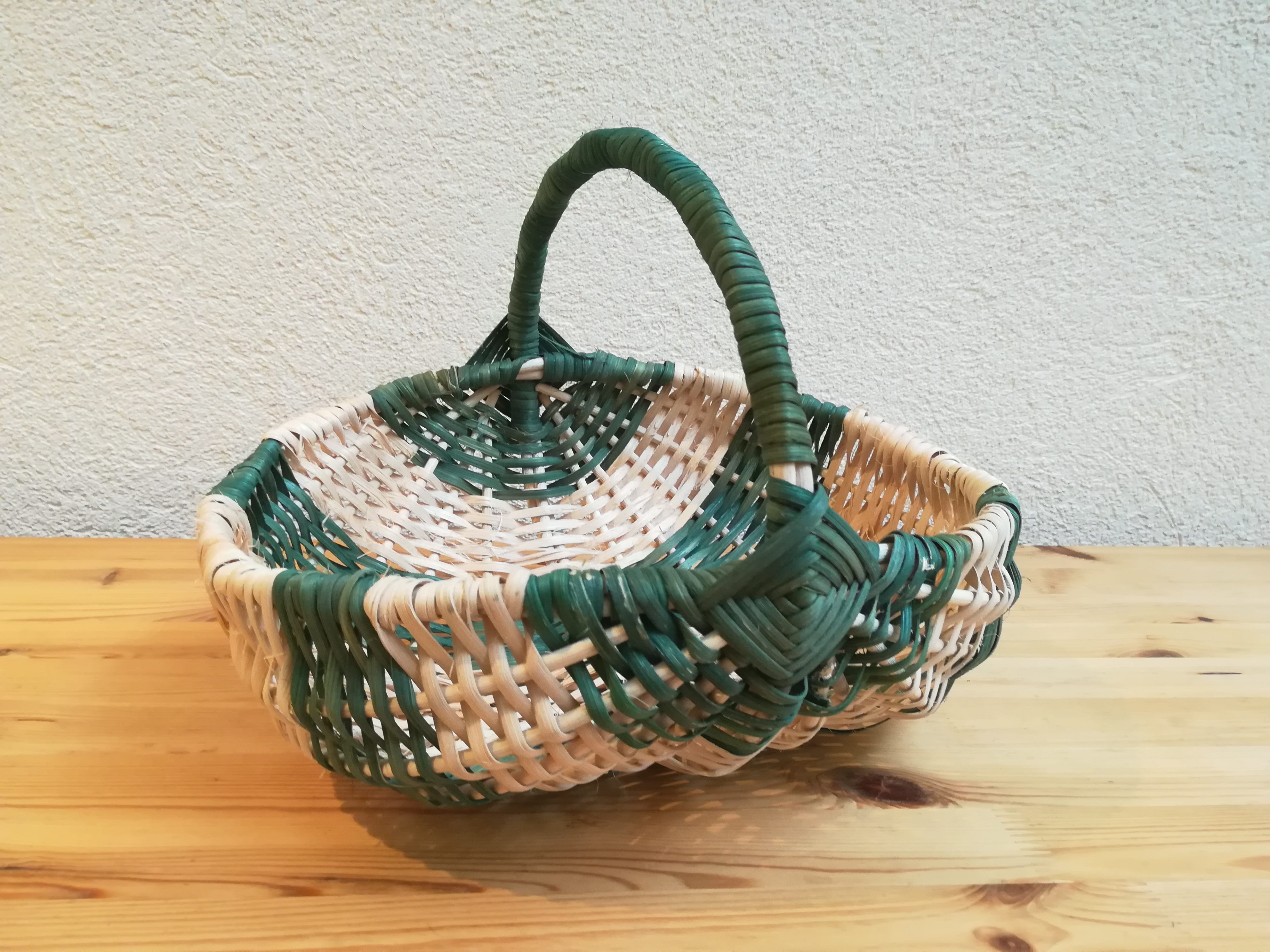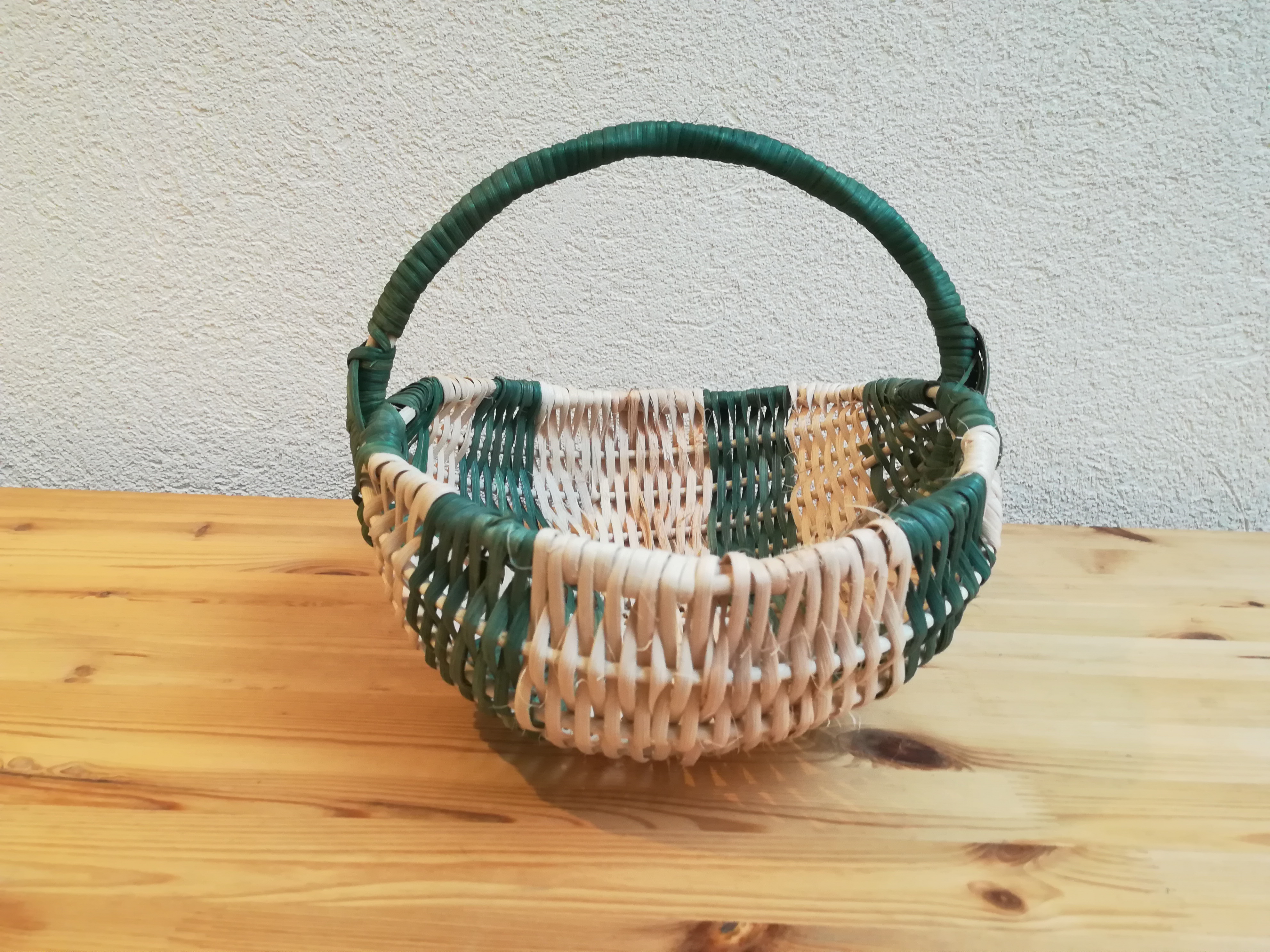 Marie-Alix a réalisé son premier panier sur arceaux. Il est tressé en éclisse de rotin sur une armature en moelle. Il a été garni de produits régionaux et offert pour les fêtes 🙂
