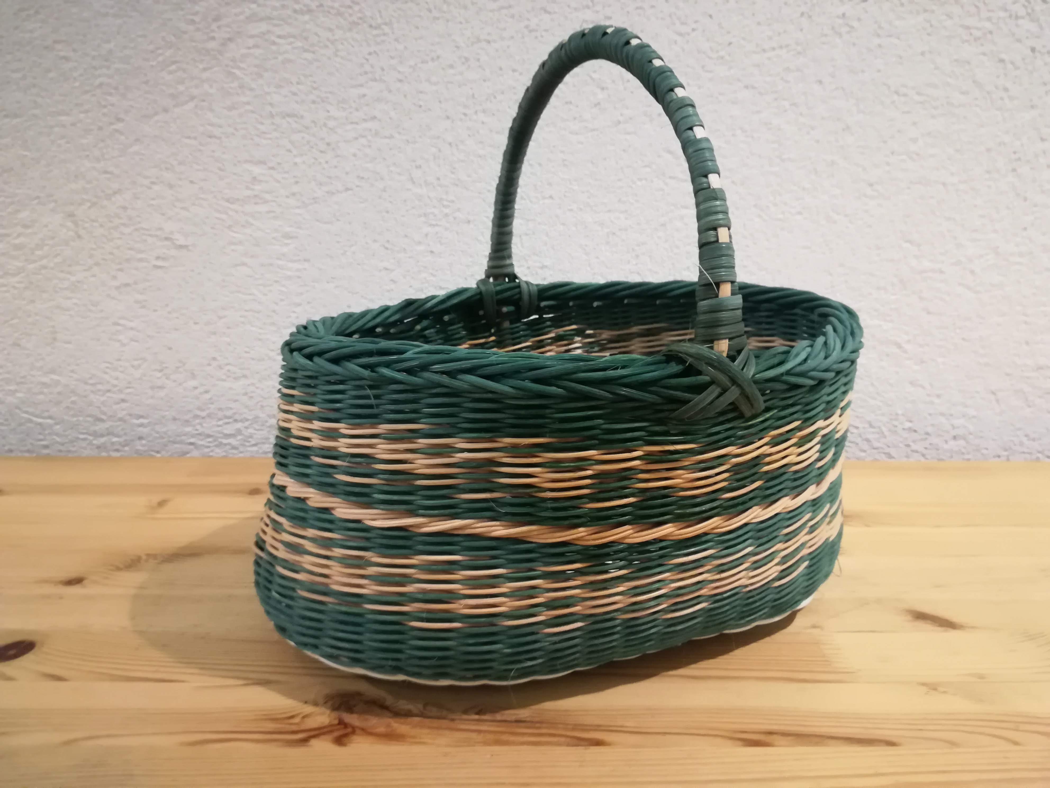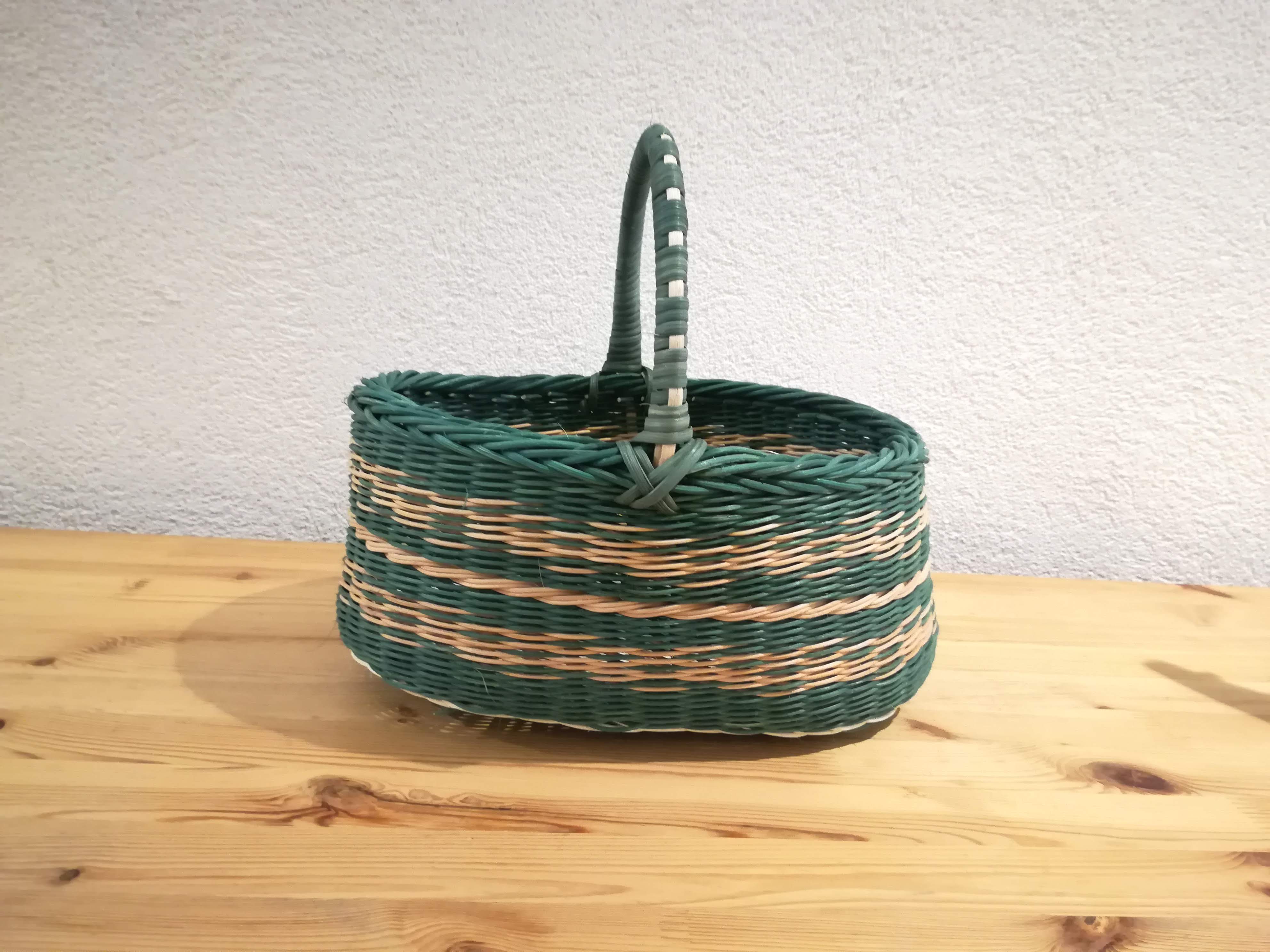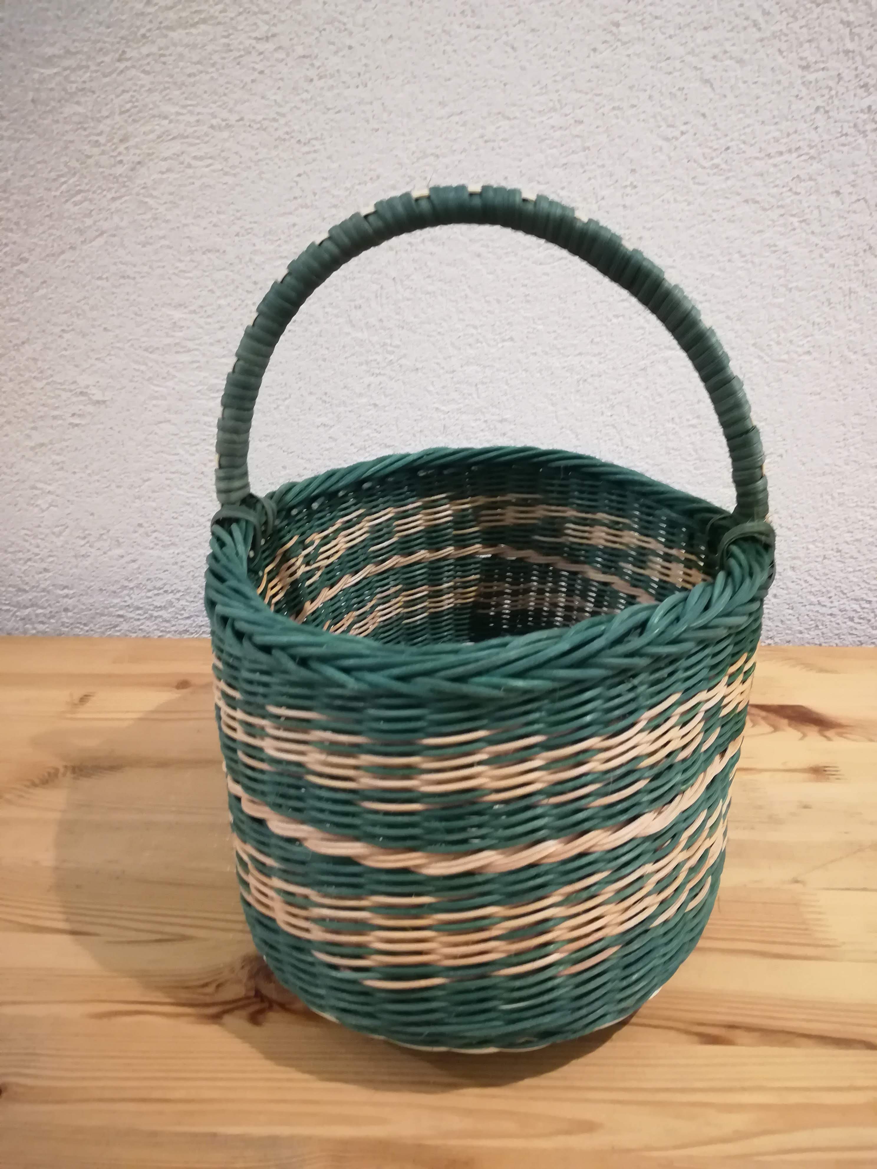 Sur une base en croisée percée ovale, Nelly a réalisé ce joli panier tout en moelle de rotin. Elle a tressé principalement en torche et recouvert l’anse d’un brin d’éclisse.