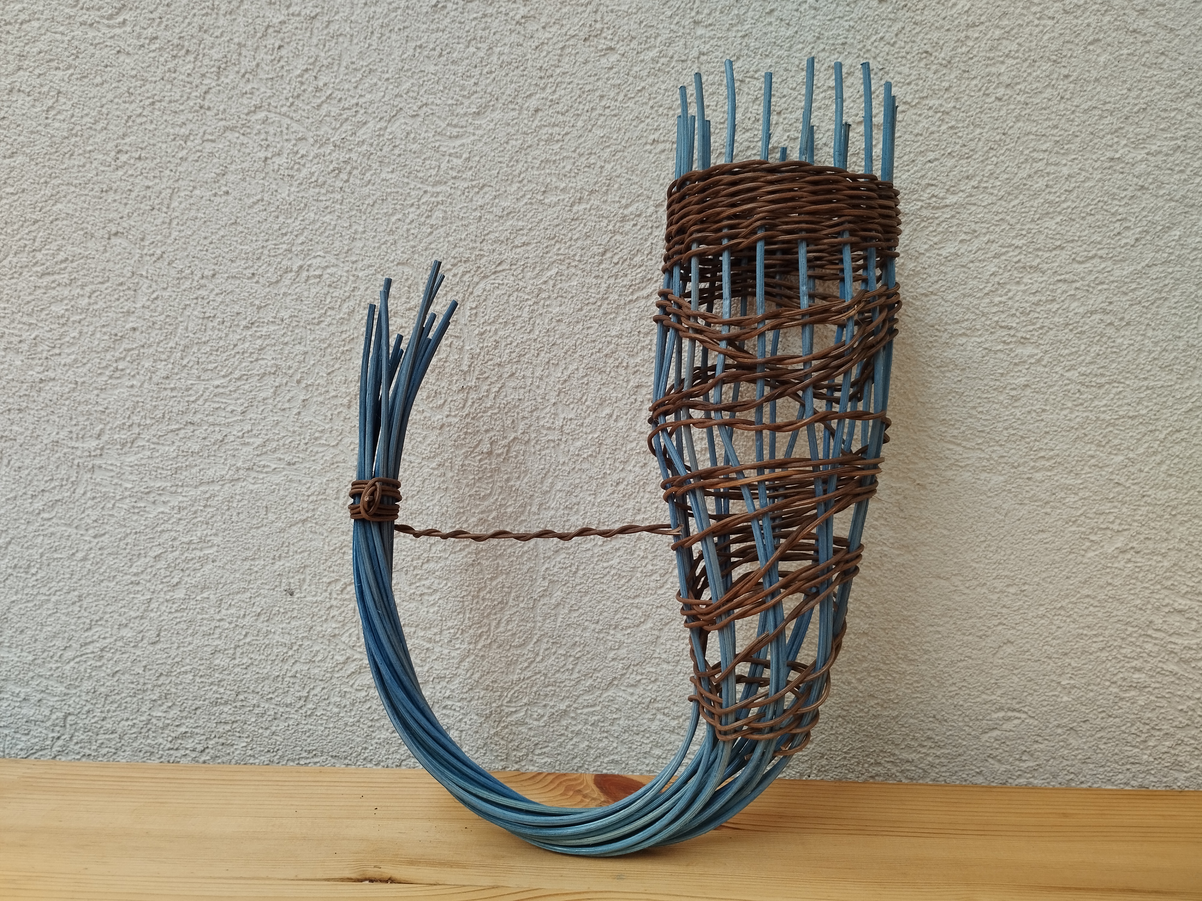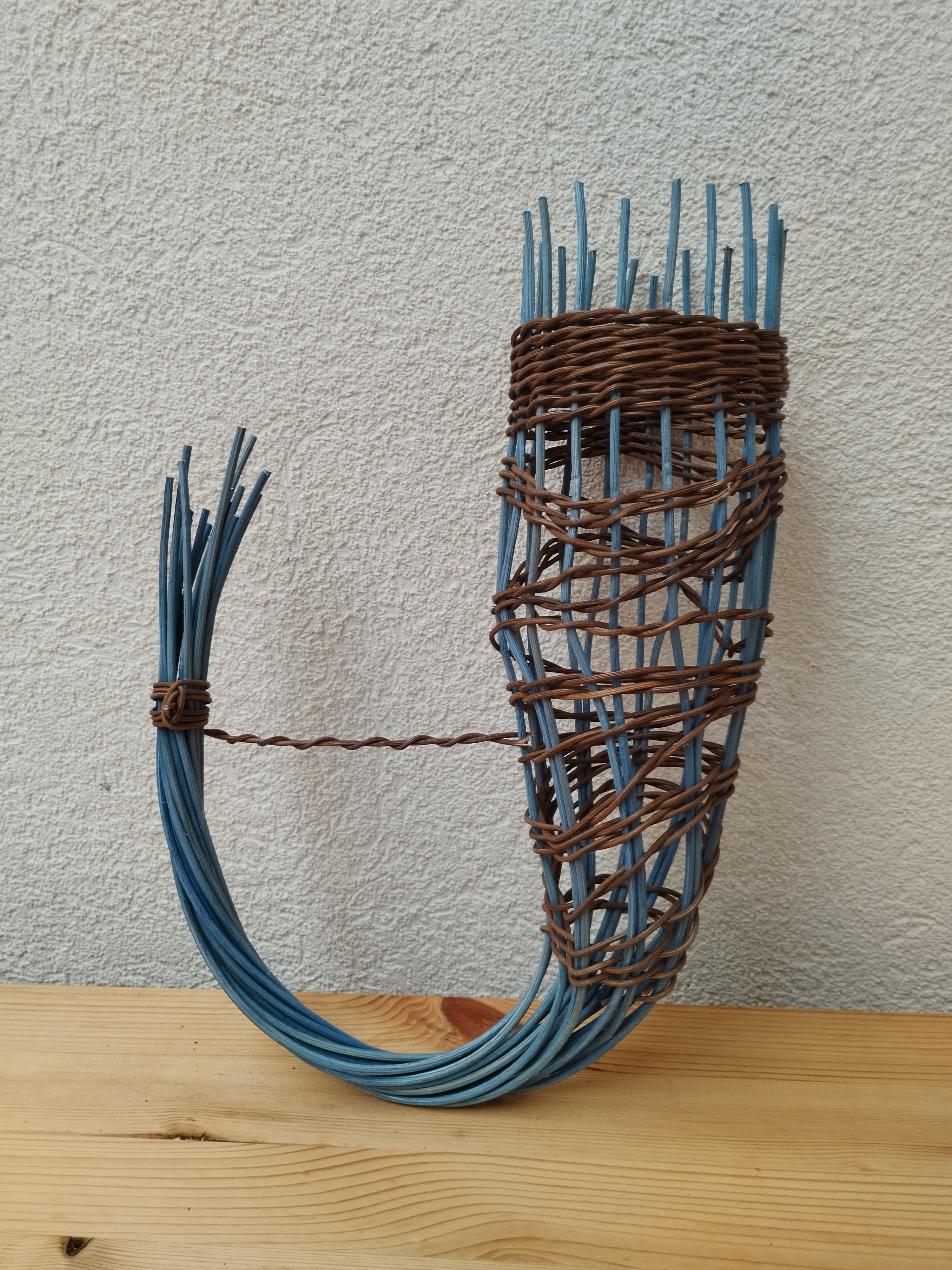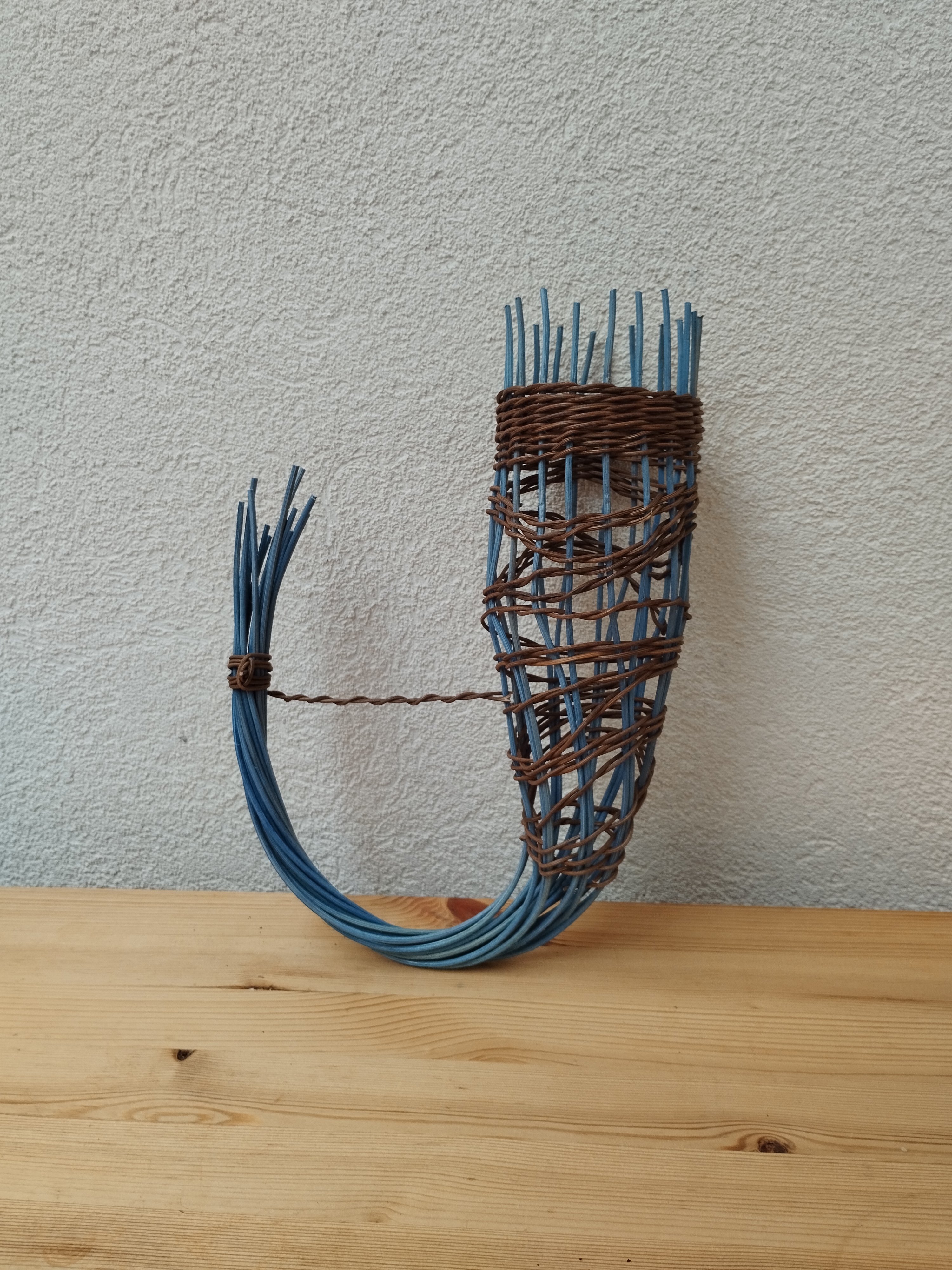 Deux cornes d’abondance tressées par Nelly lors de la journée vannerie début juillet. Réalisées en moelle de rotin et décorées de nœuds japonais et perles en bois.
