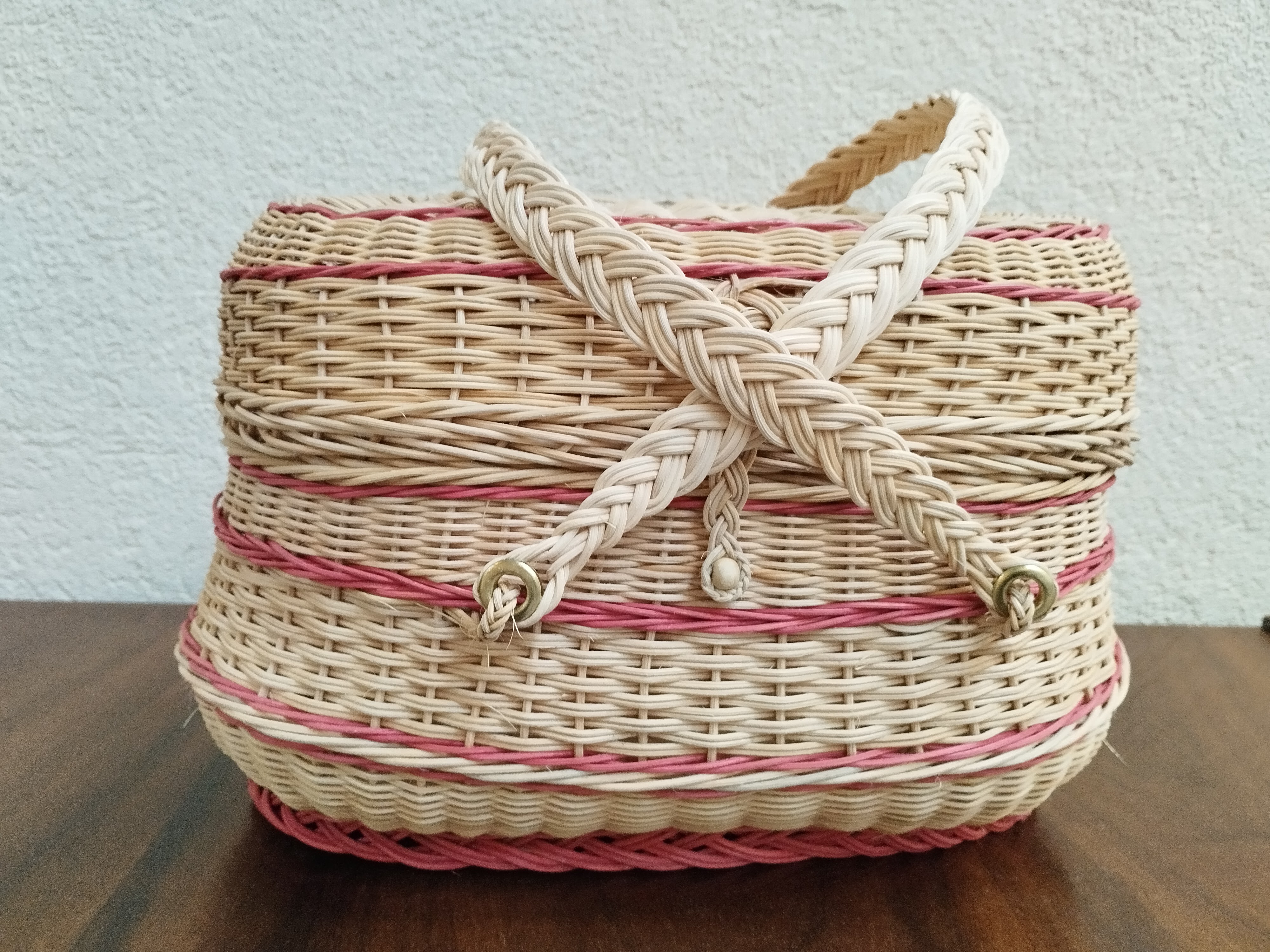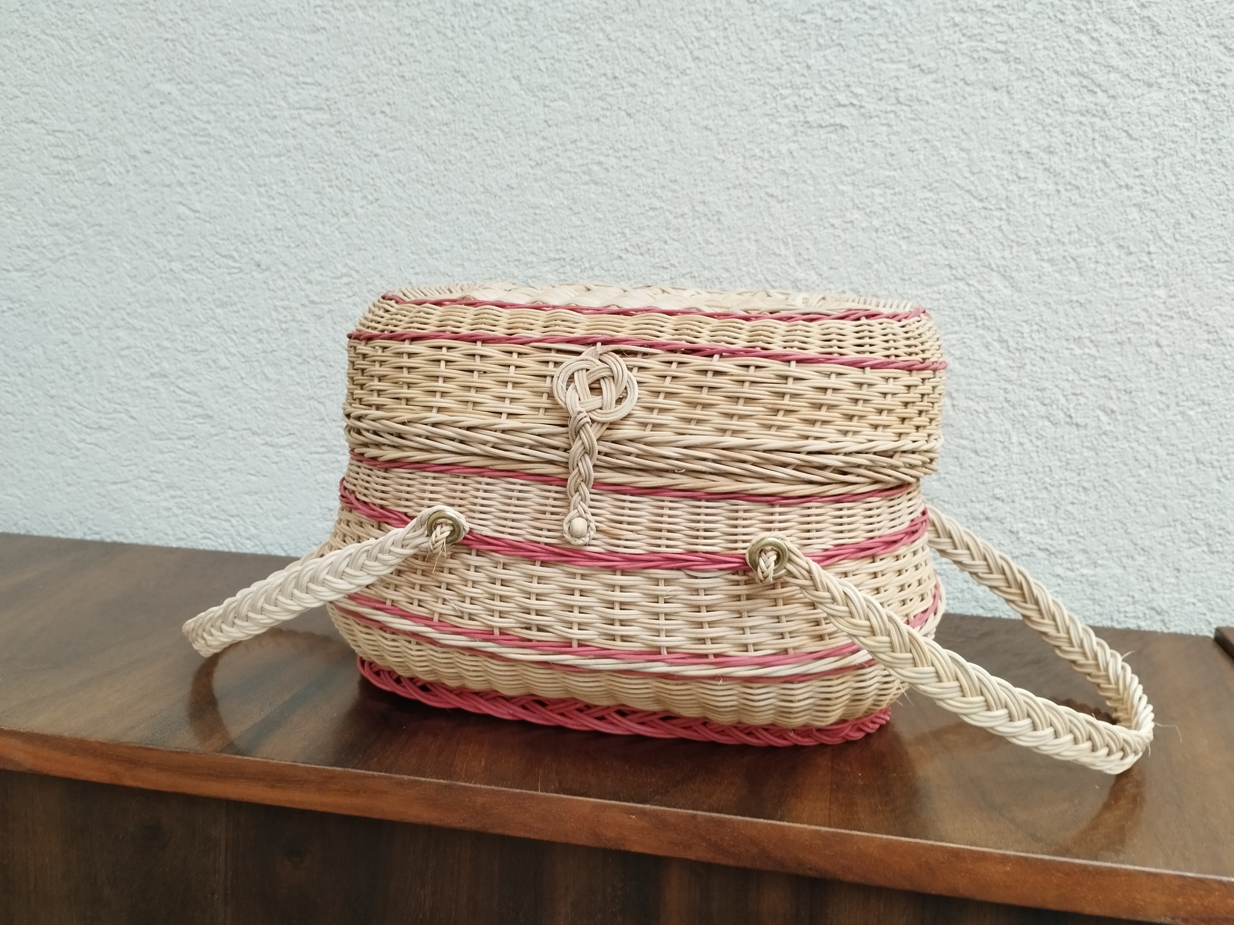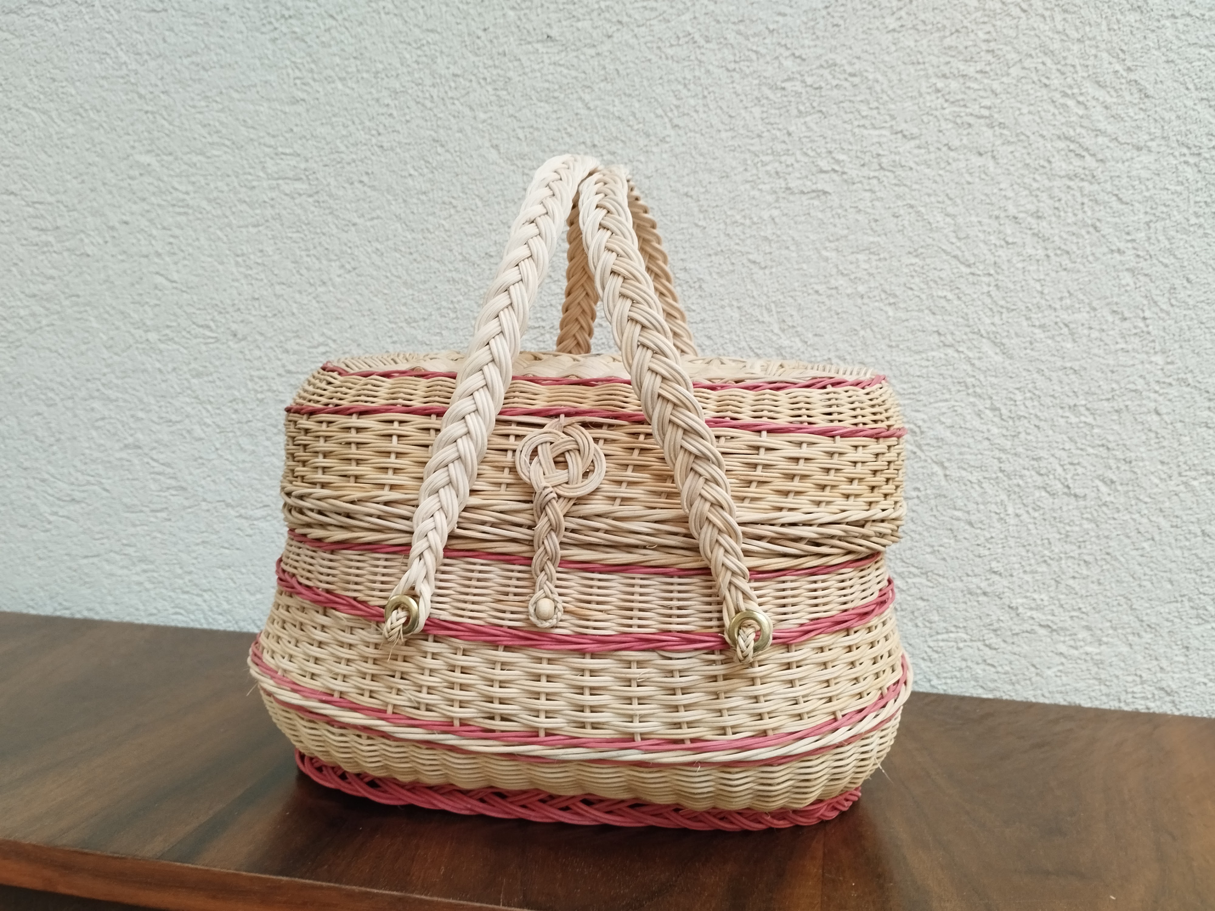 Après des heures de tressage, voici le panier de Nicole terminé ! Tout en moelle de rotin, cet ouvrage de vannerie fine se fait sur un moule puis est verni.
