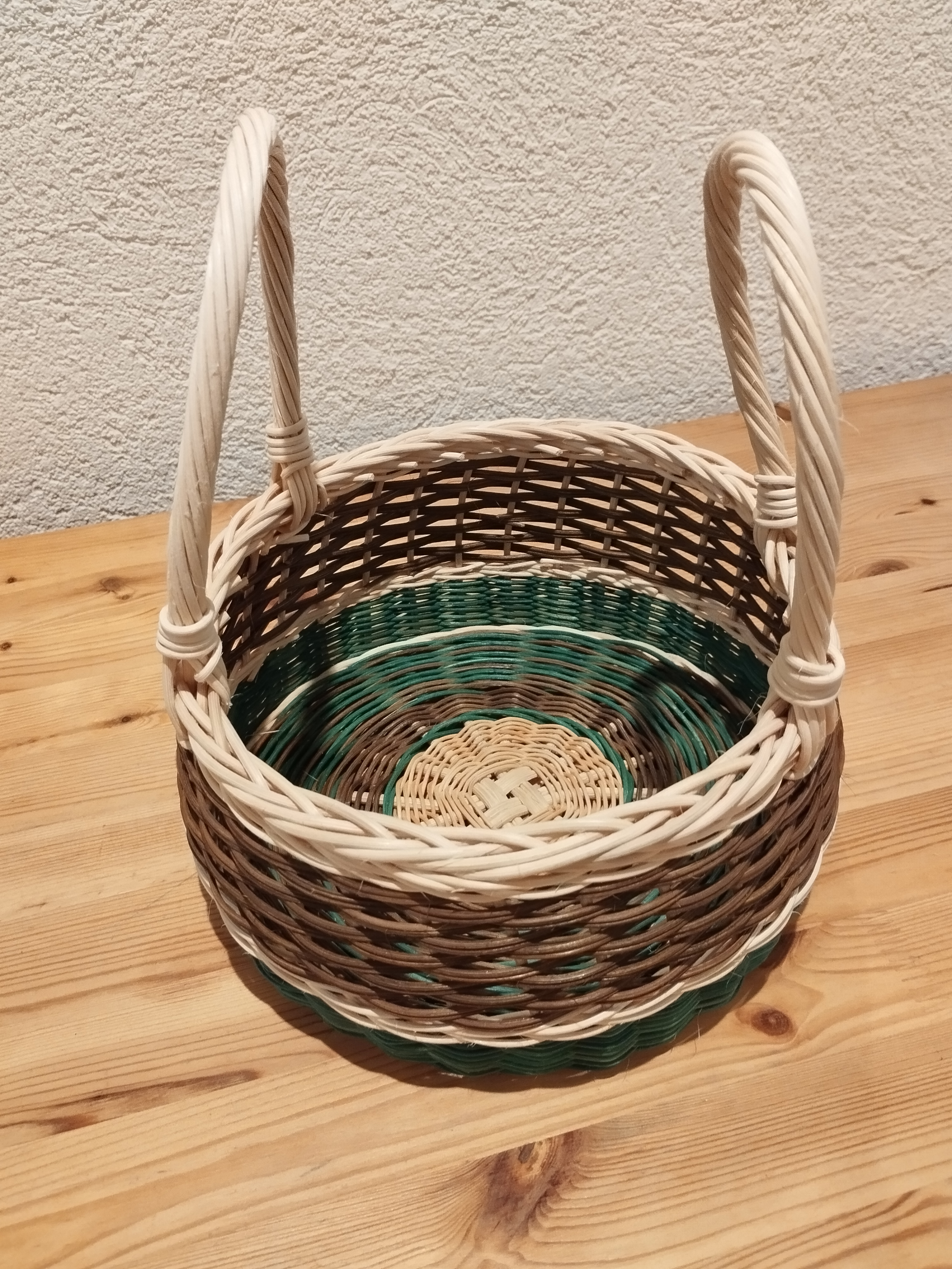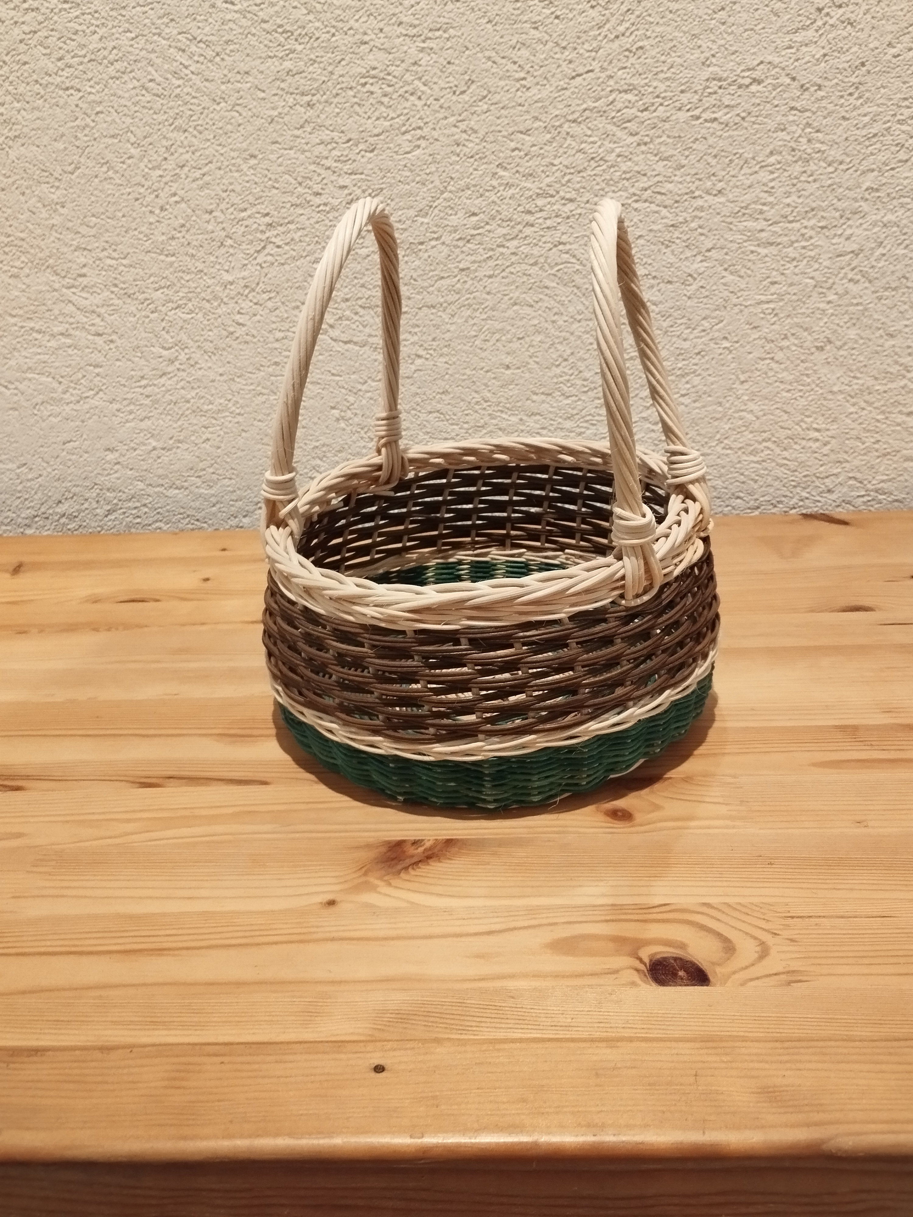 Sur un fond en croisée suédoise, Laura a tressé en super et torche. La clôture est en super, fleur de lys et planchette. Deux petites anses viennent terminer ce joli petit panier 😍