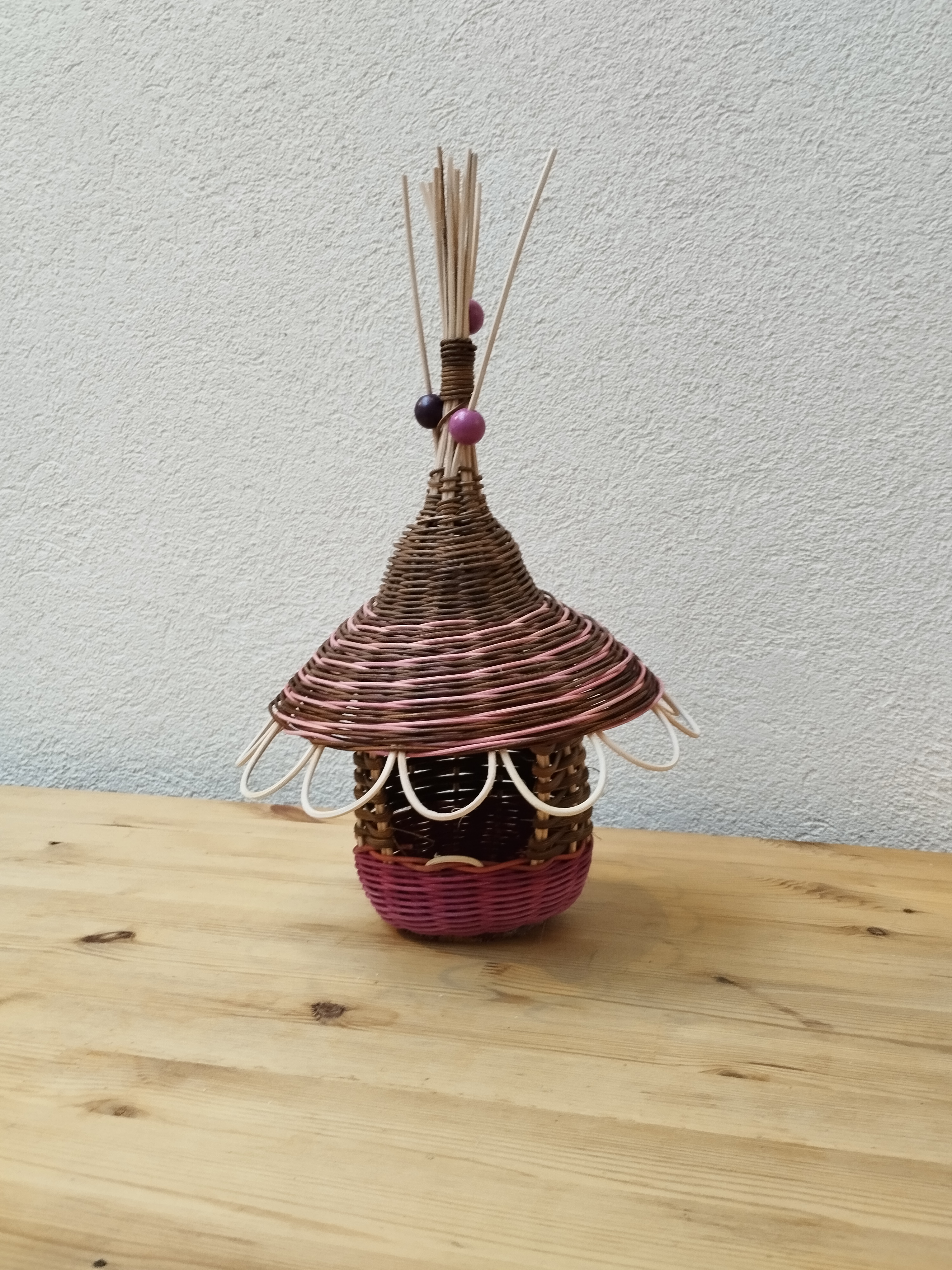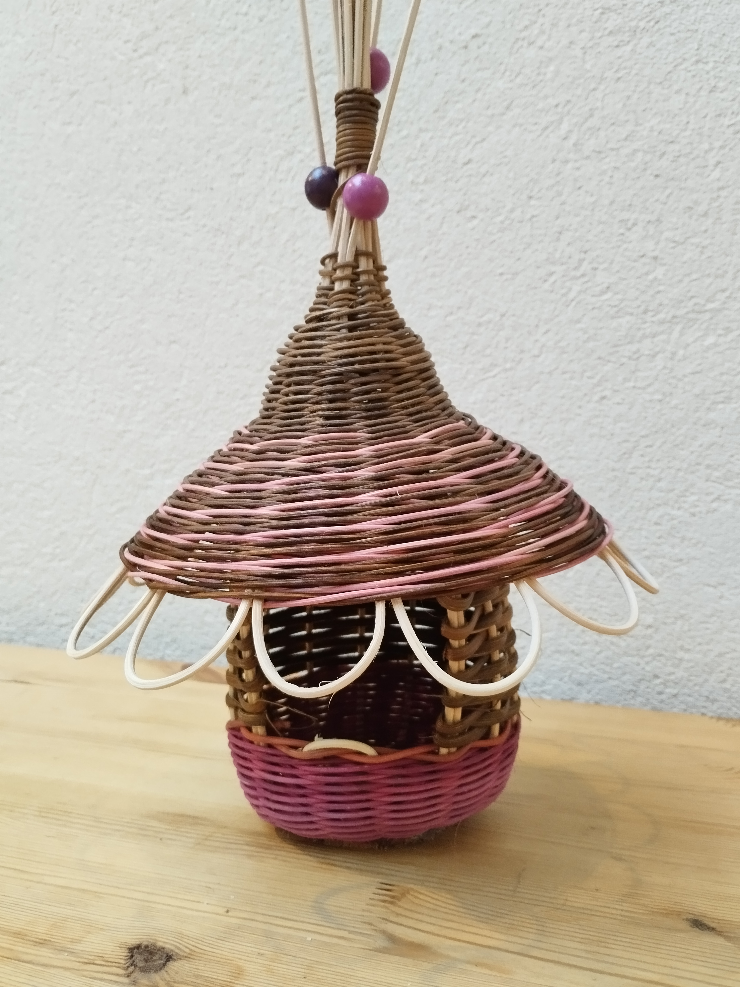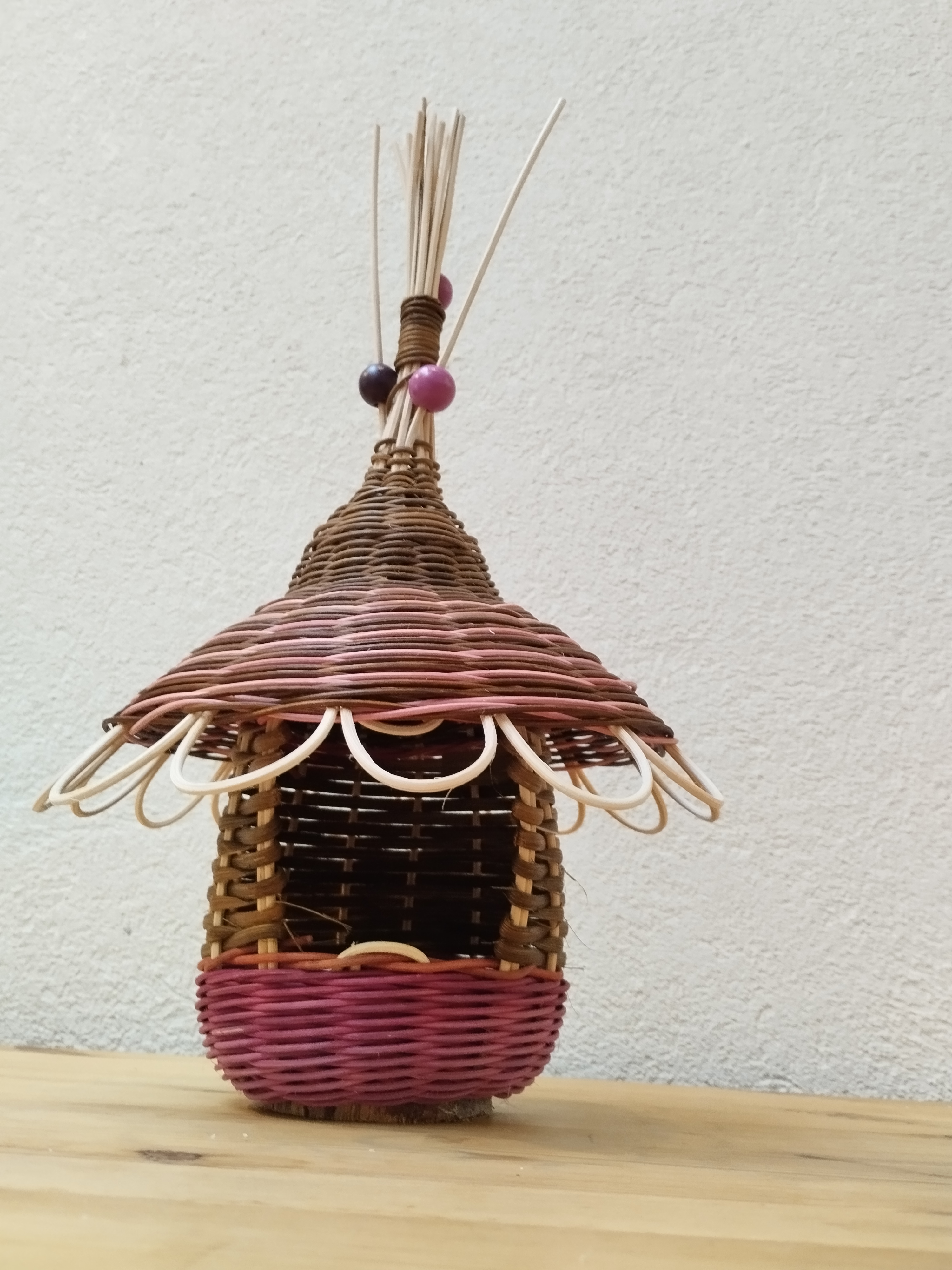 Nelly a réalisé une jolie mangeoire à oiseaux sur une rondelle de bois et a ajouté des perles en bois pour finaliser la déco.