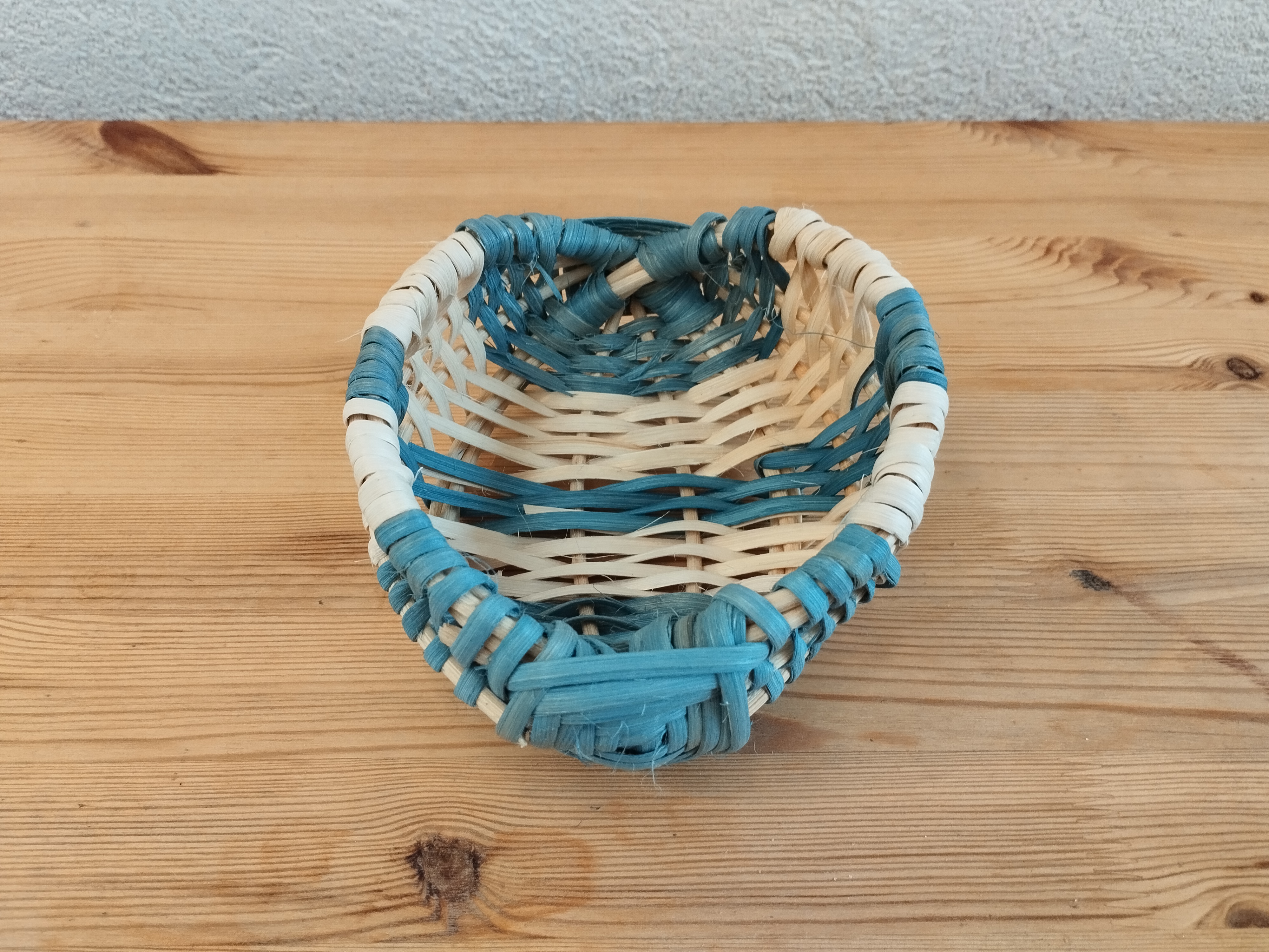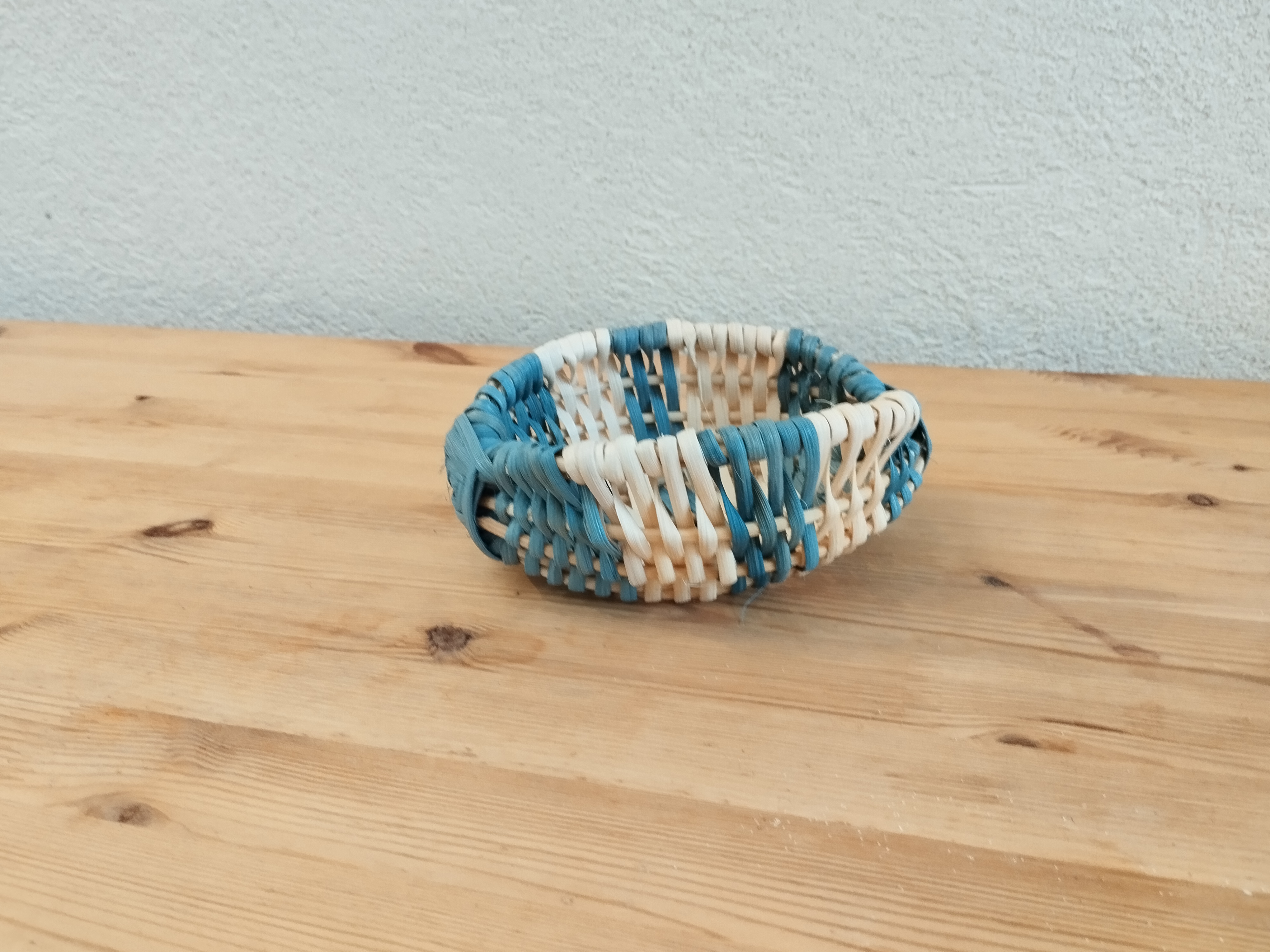 Dominique continue ses petites corbeilles sur arceaux. Voici la deuxième, tressée en éclisse de rotin sur une armature en moelle.