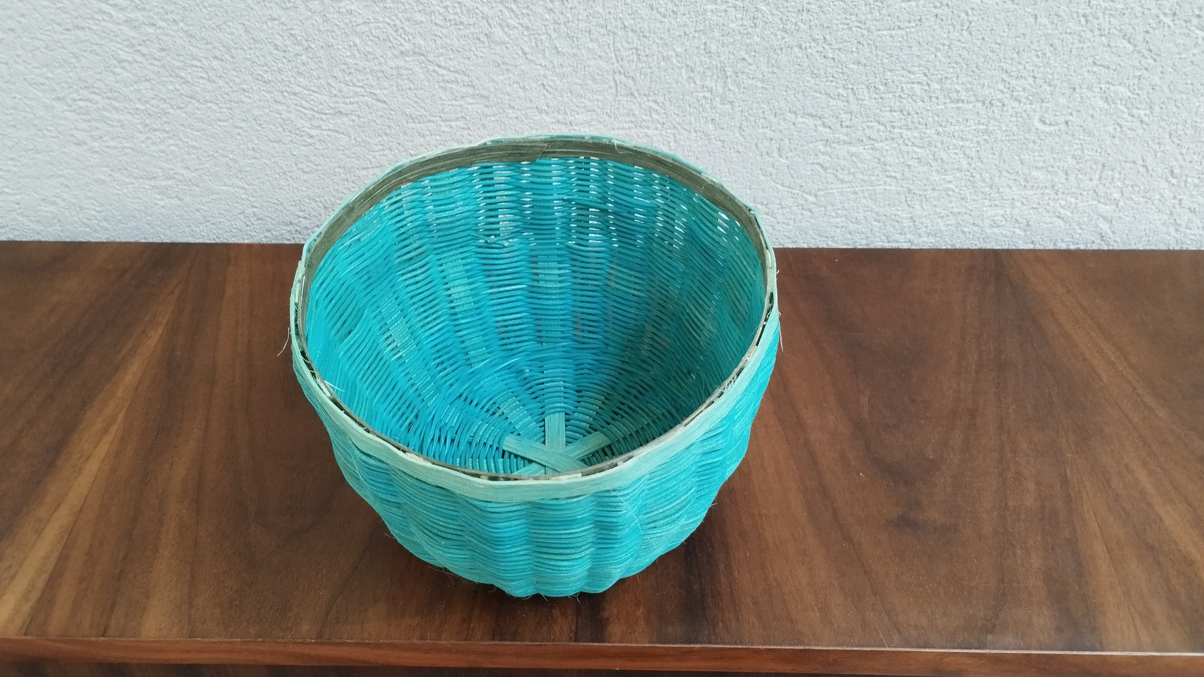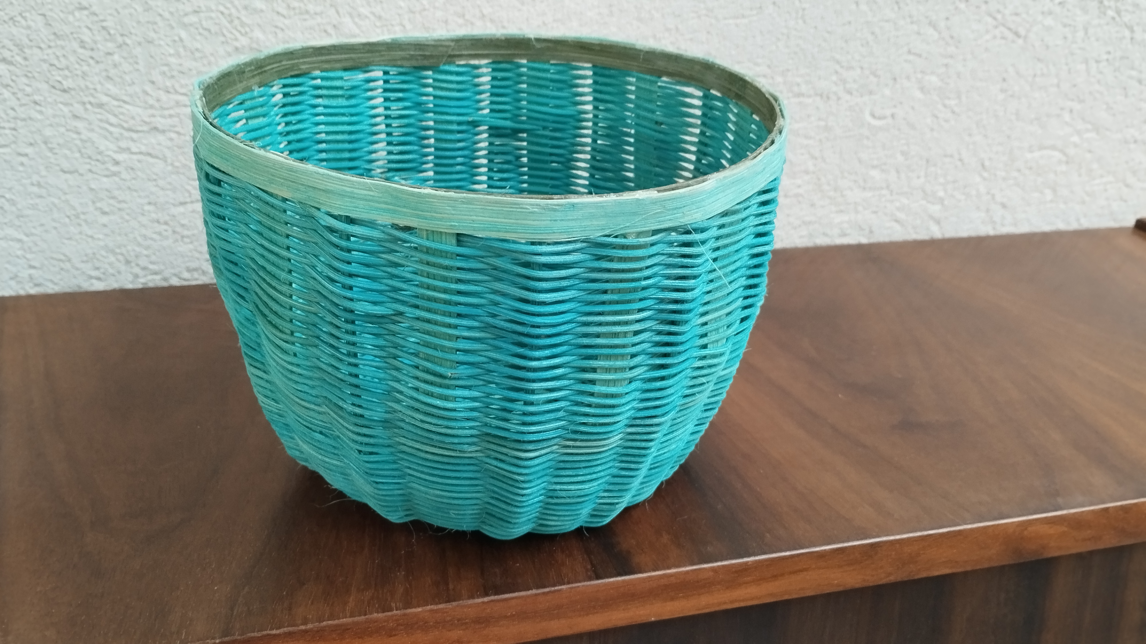 Béatrice a tressé cette petite corbeille en utilisant comme armature de la bande de rotin. Ensuite, elle a utilisé de la moelle et tressé pour tresser en super.