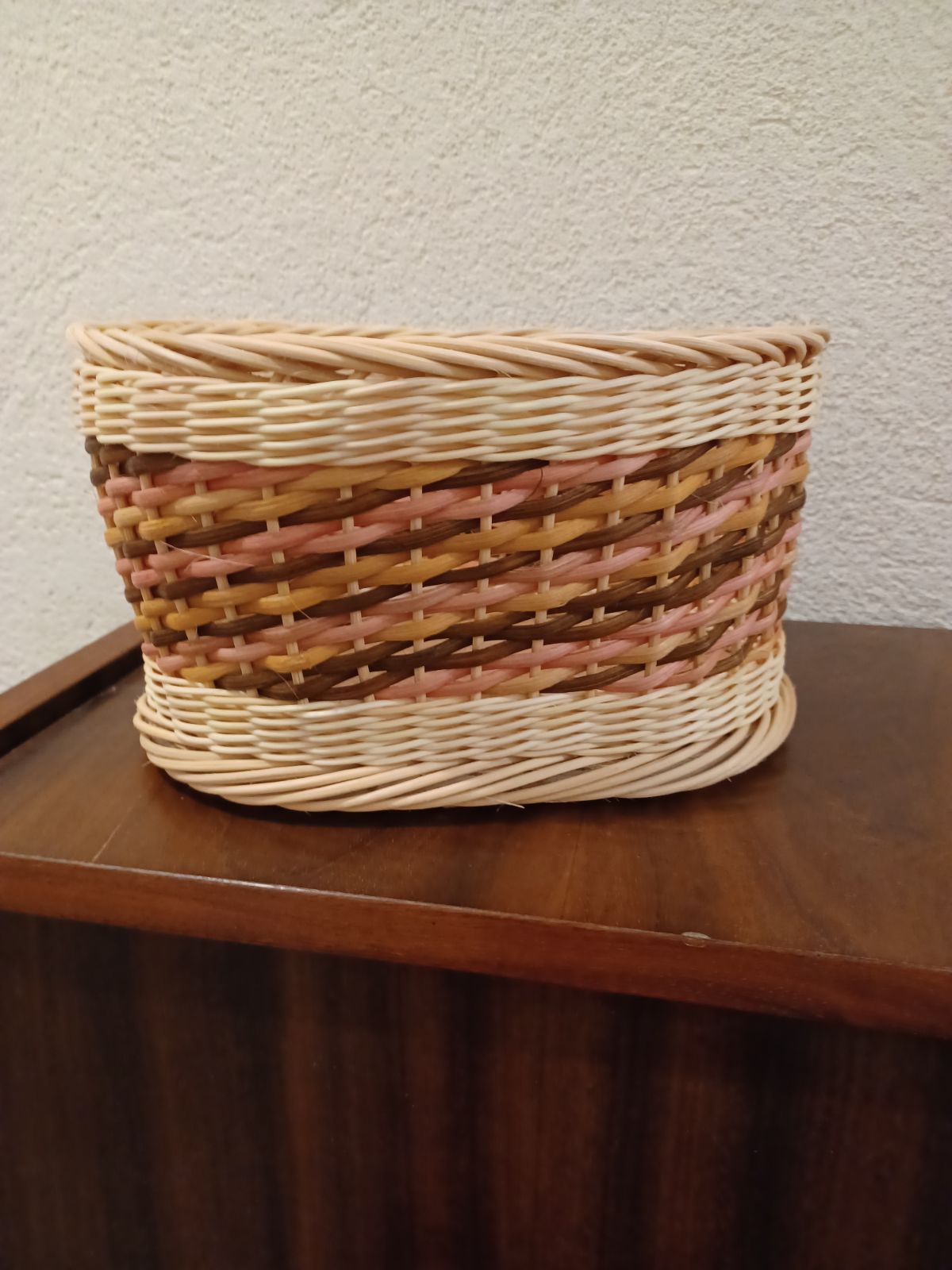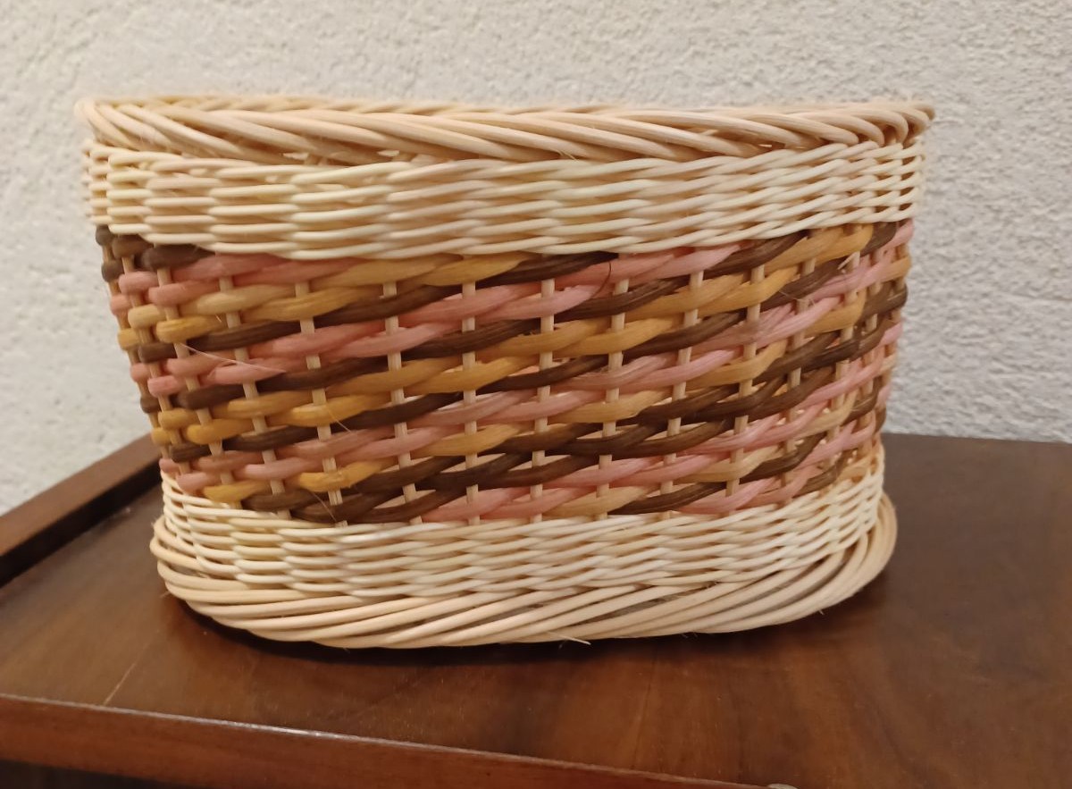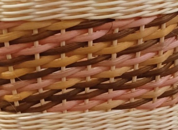 Nelly a elle aussi succombé à la crocane. Sur un fond en bois, elle a tressé en torche avec de la moelle de rotin puis en crocane avec de l’éclisse.