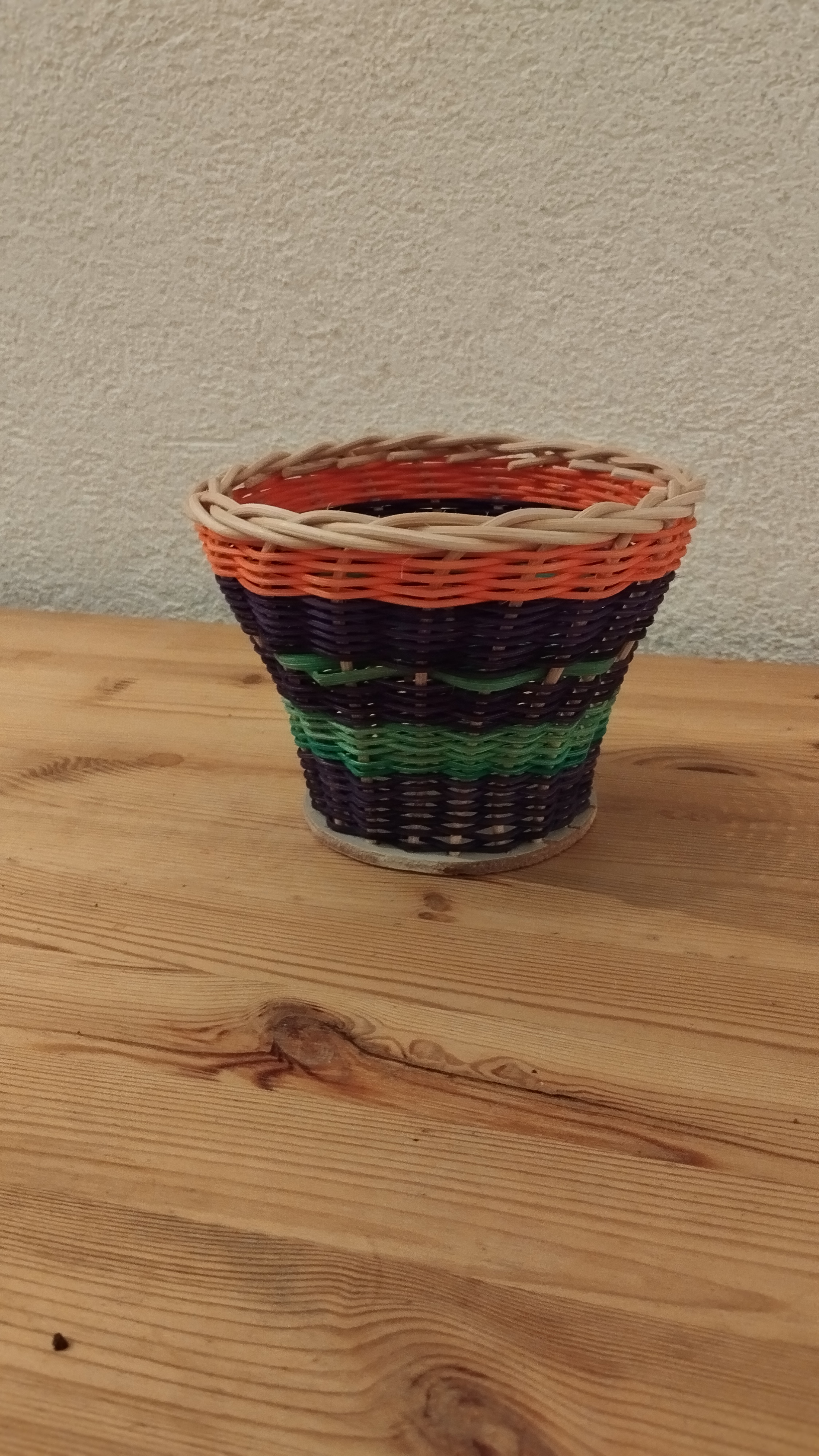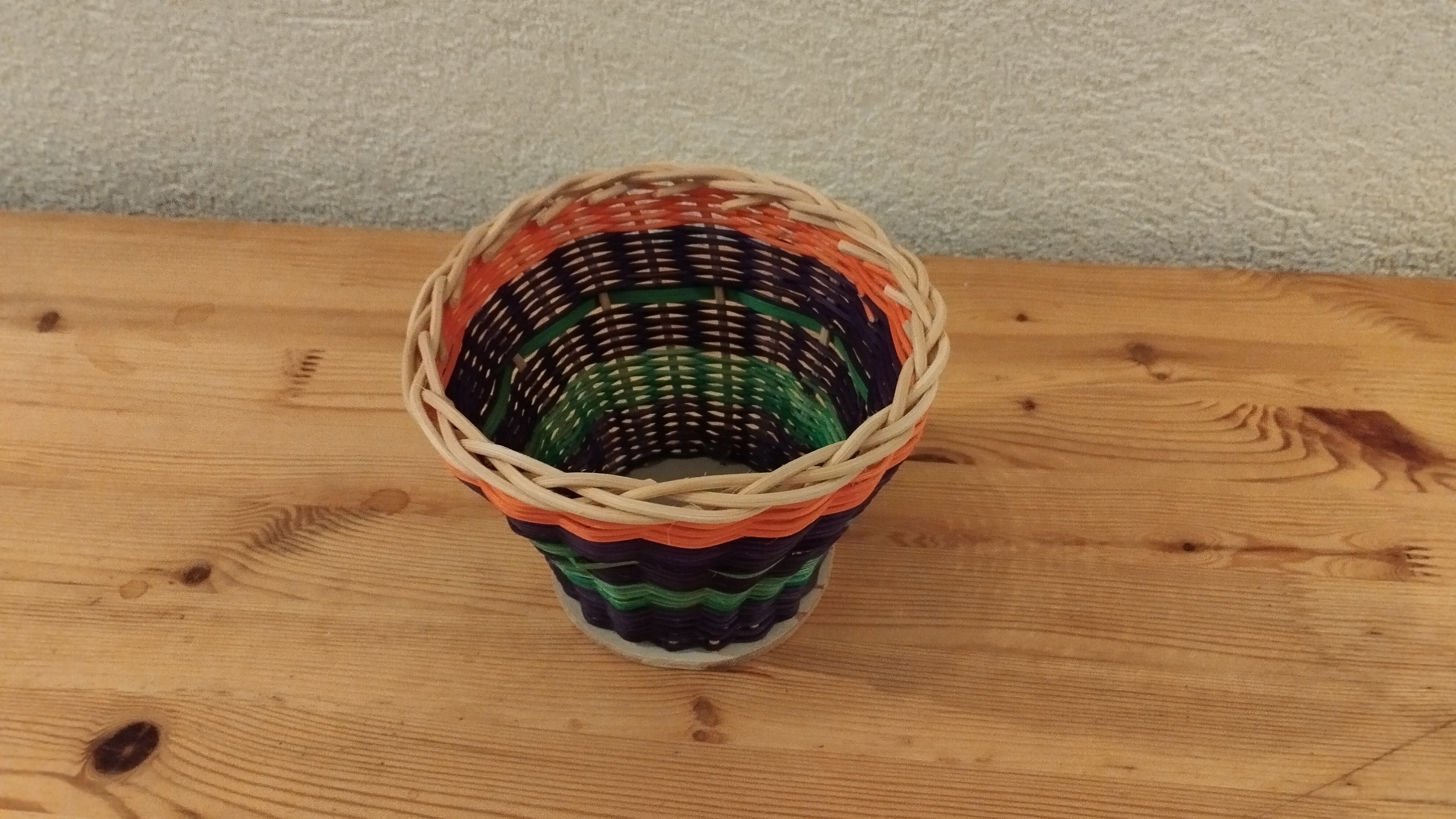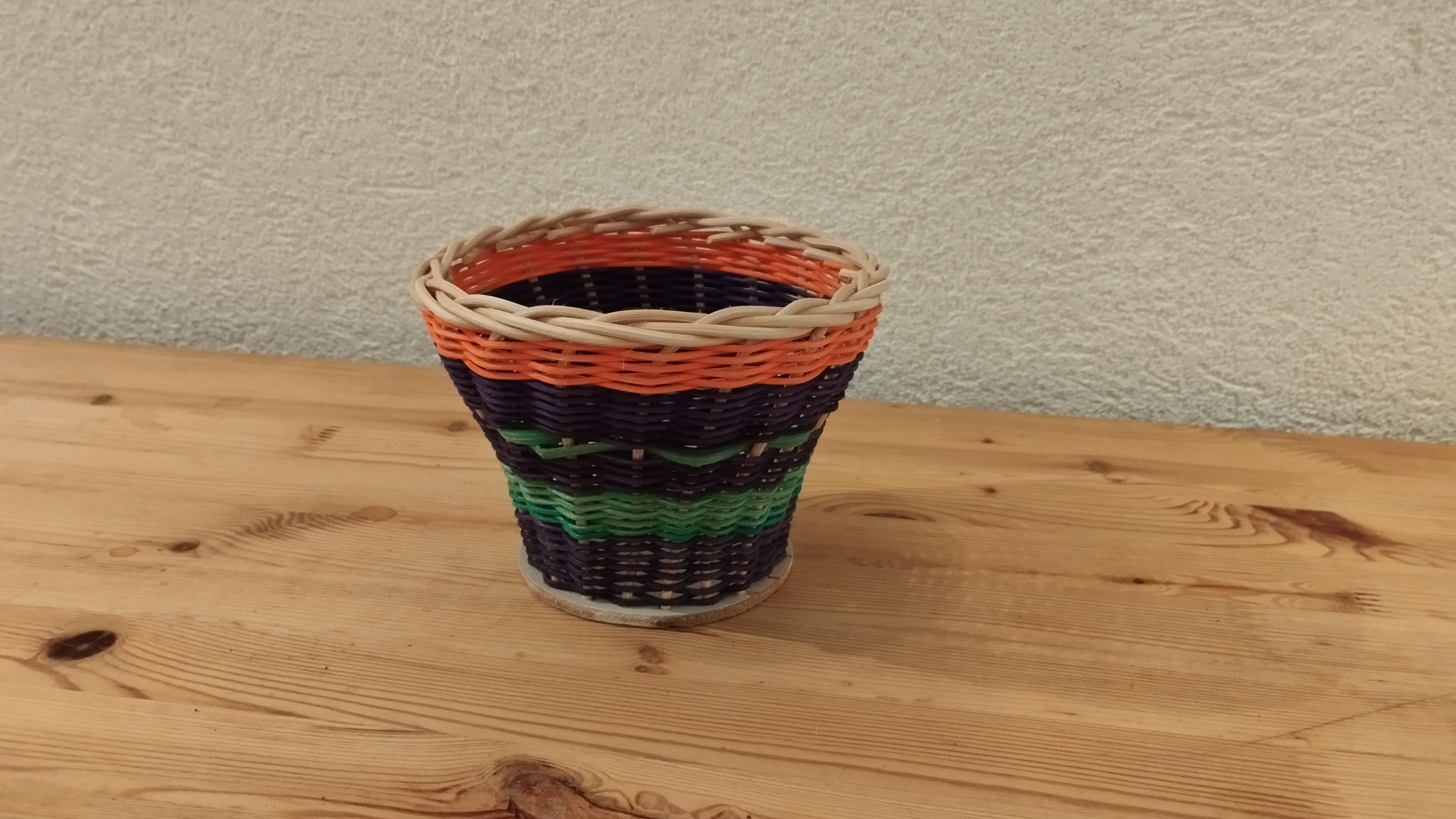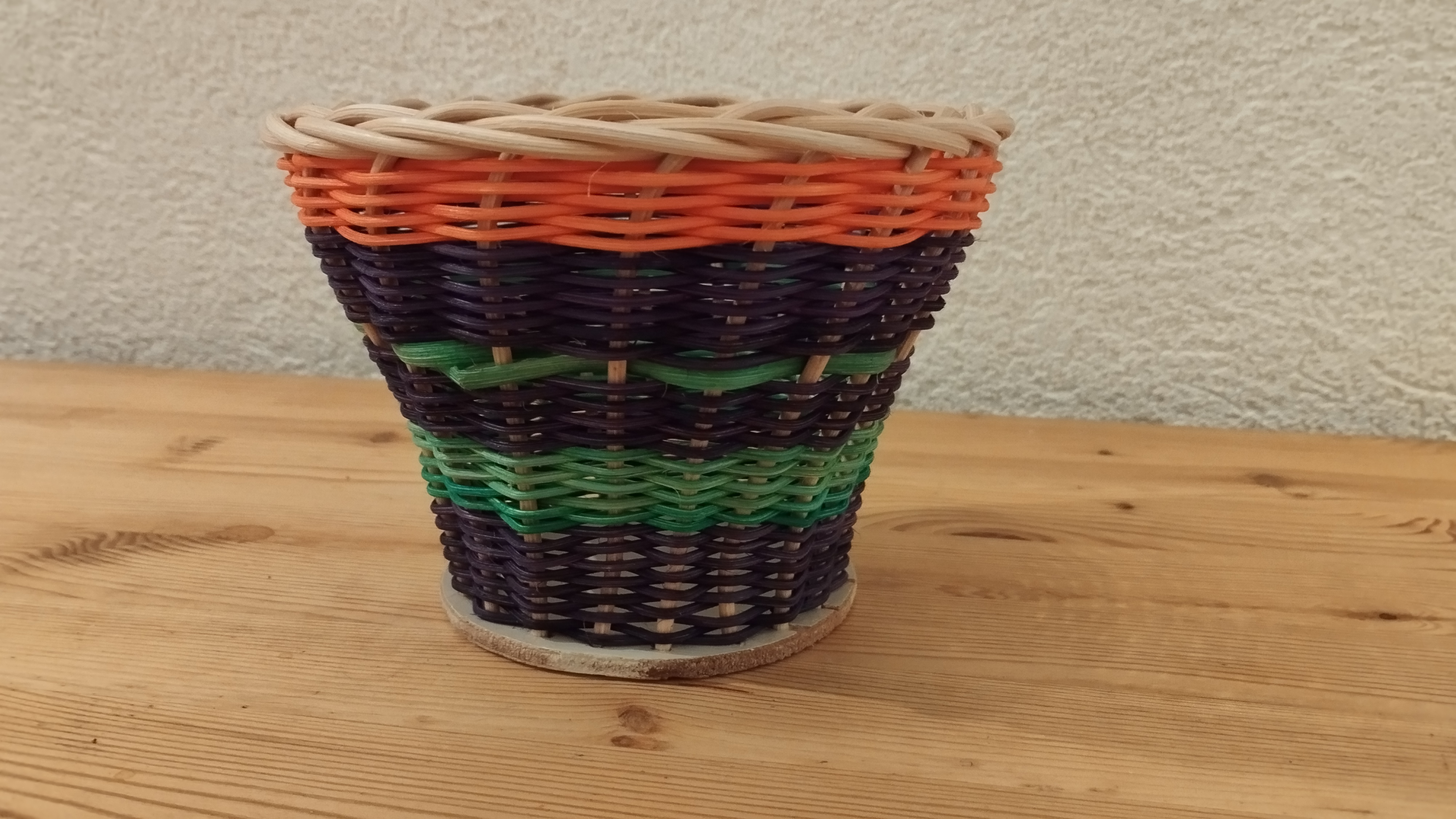Sur un fond en bois, il a tressé avec de la moelle de rotin en brins perdus.