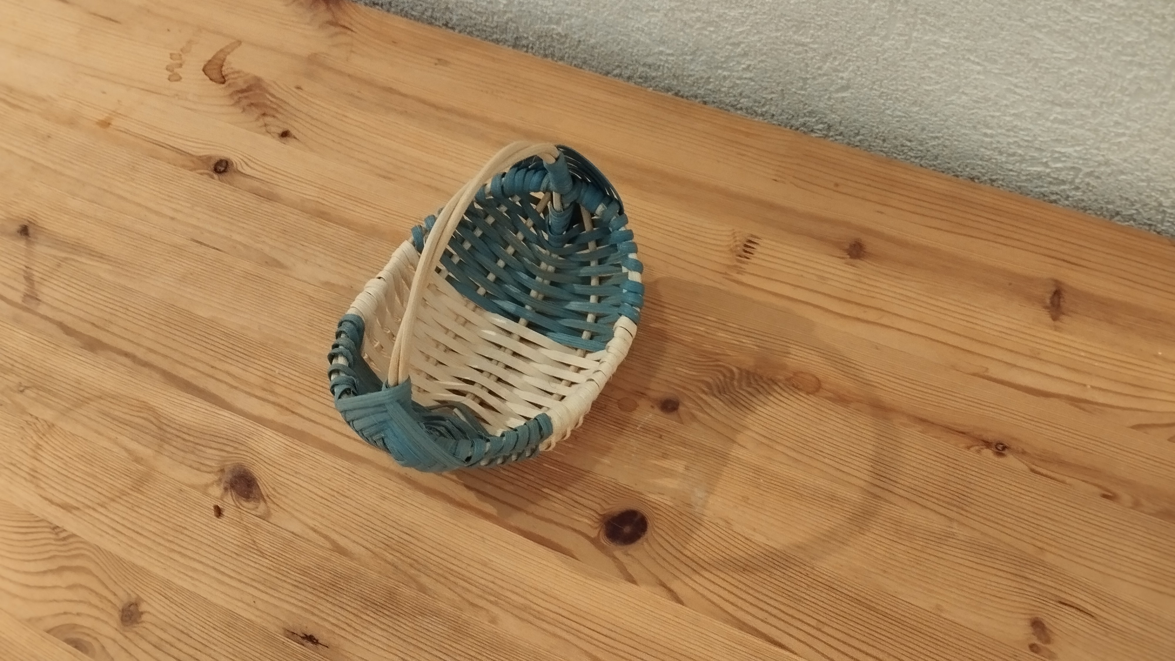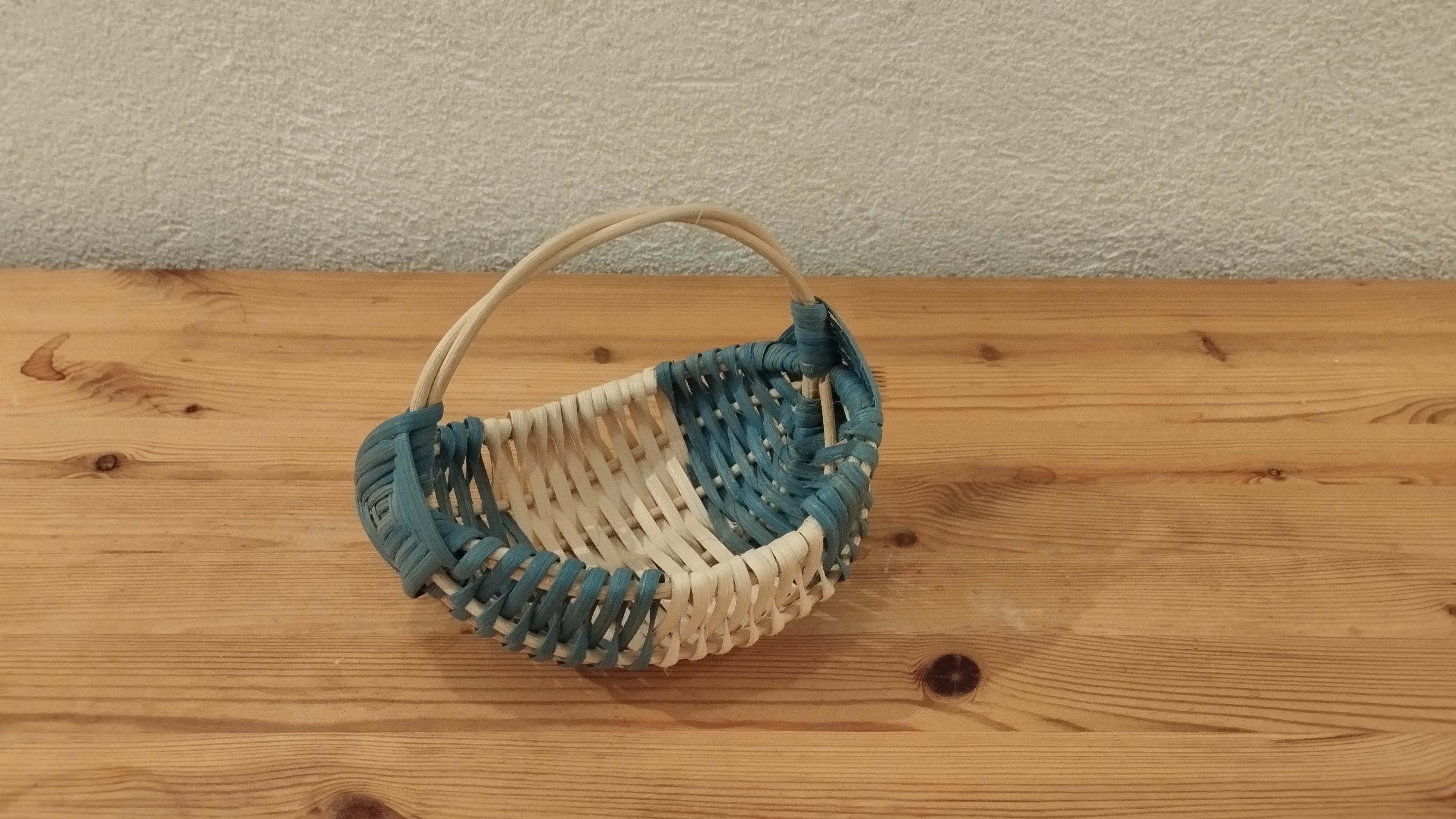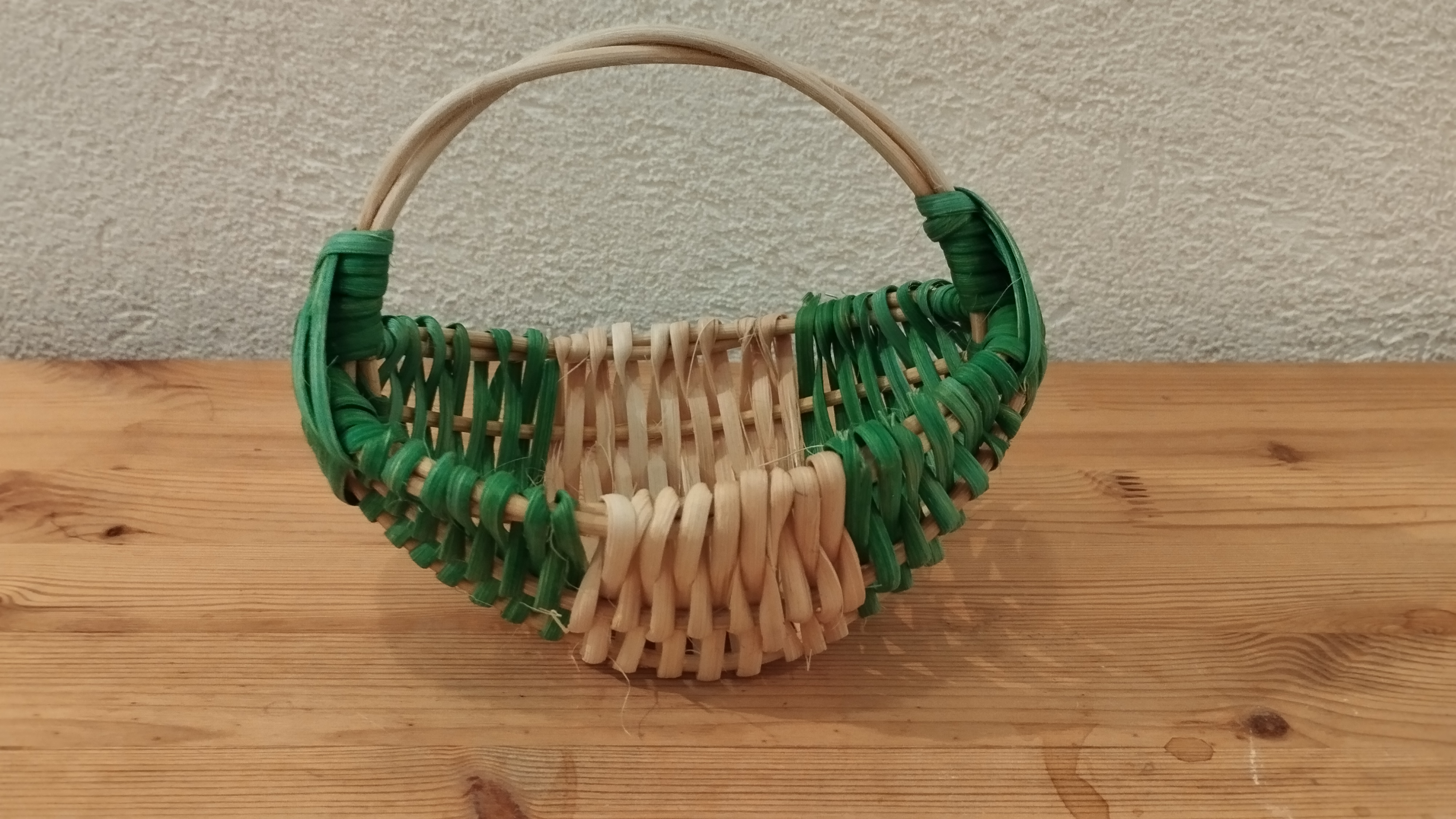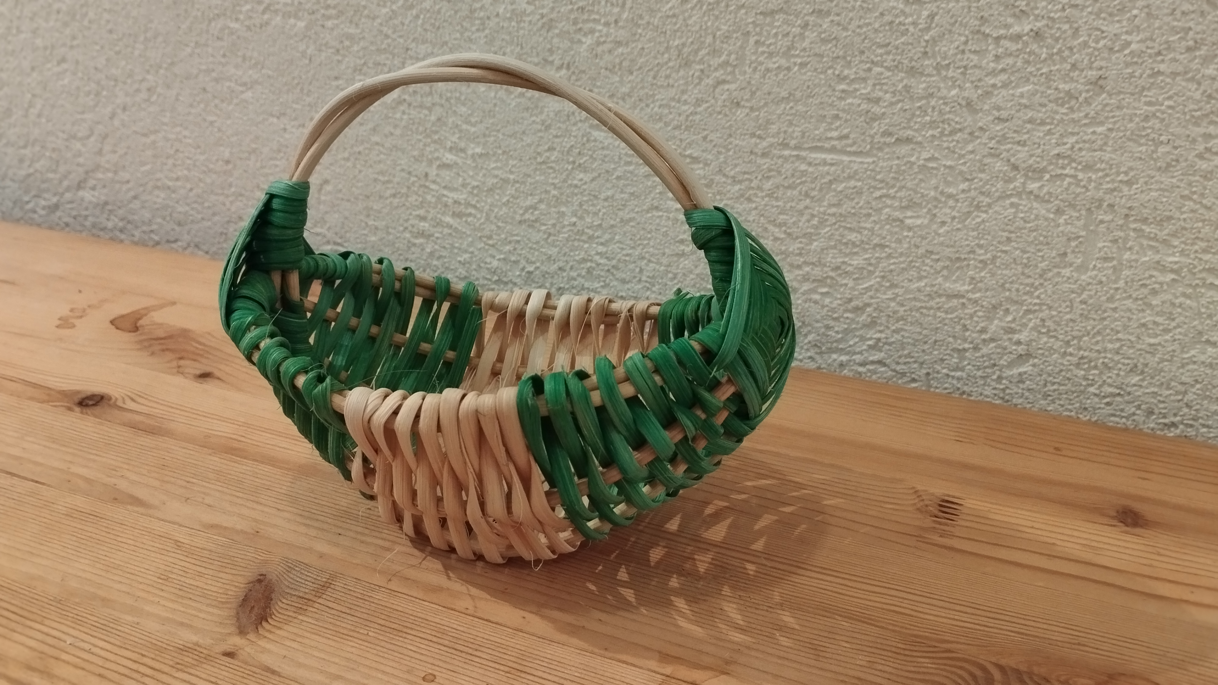 Nouvelle série de mini paniers pour les invités de Dominique, tressés sur une armature en moelle de rotin puis un tressage en éclisse.
