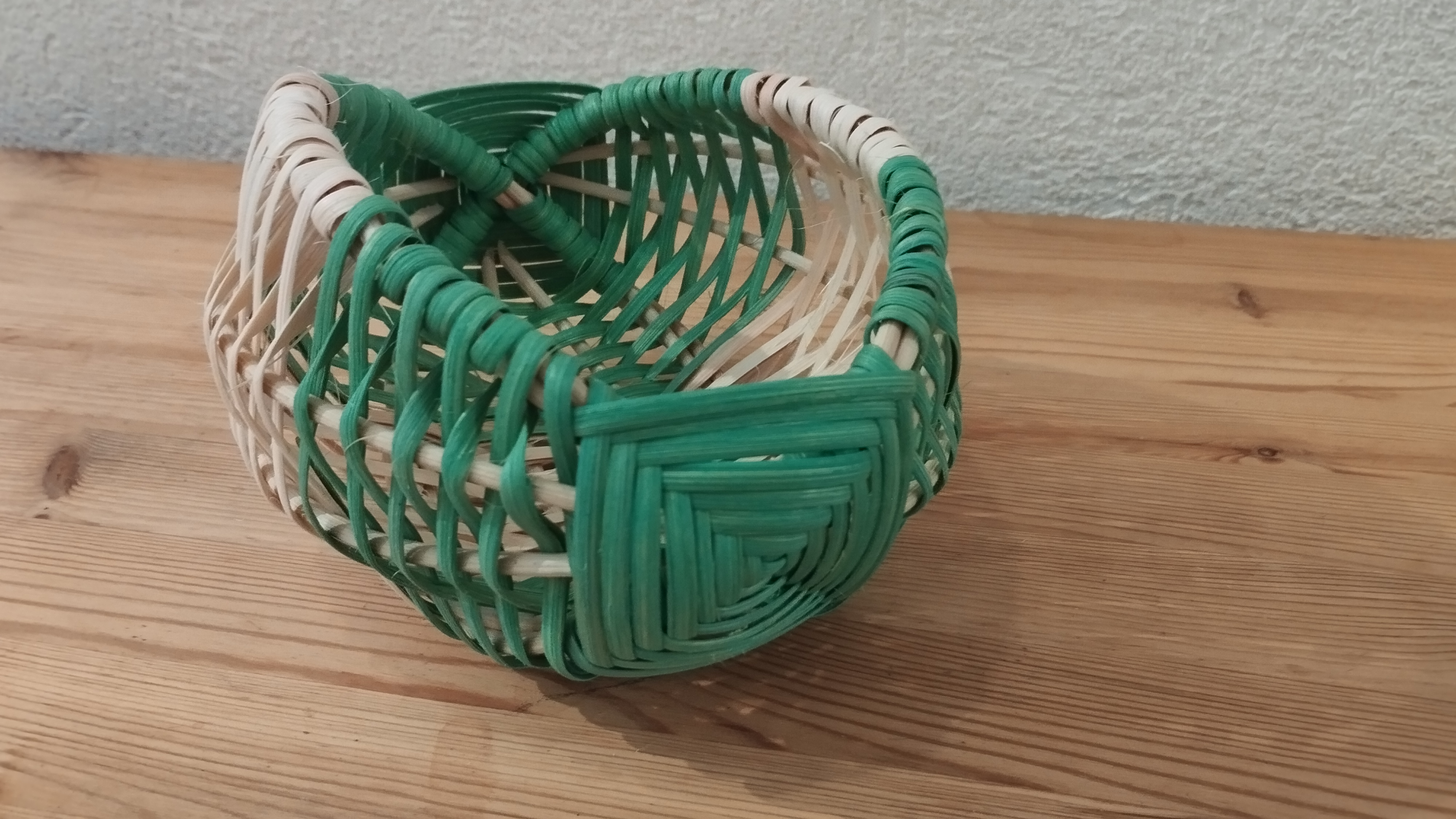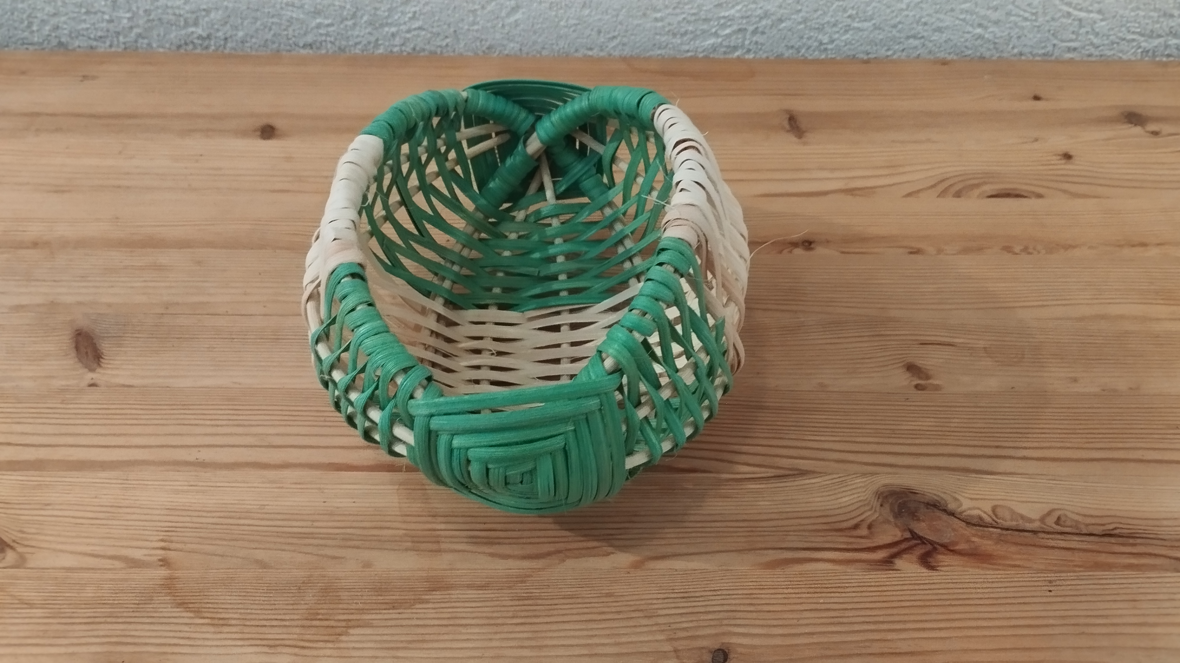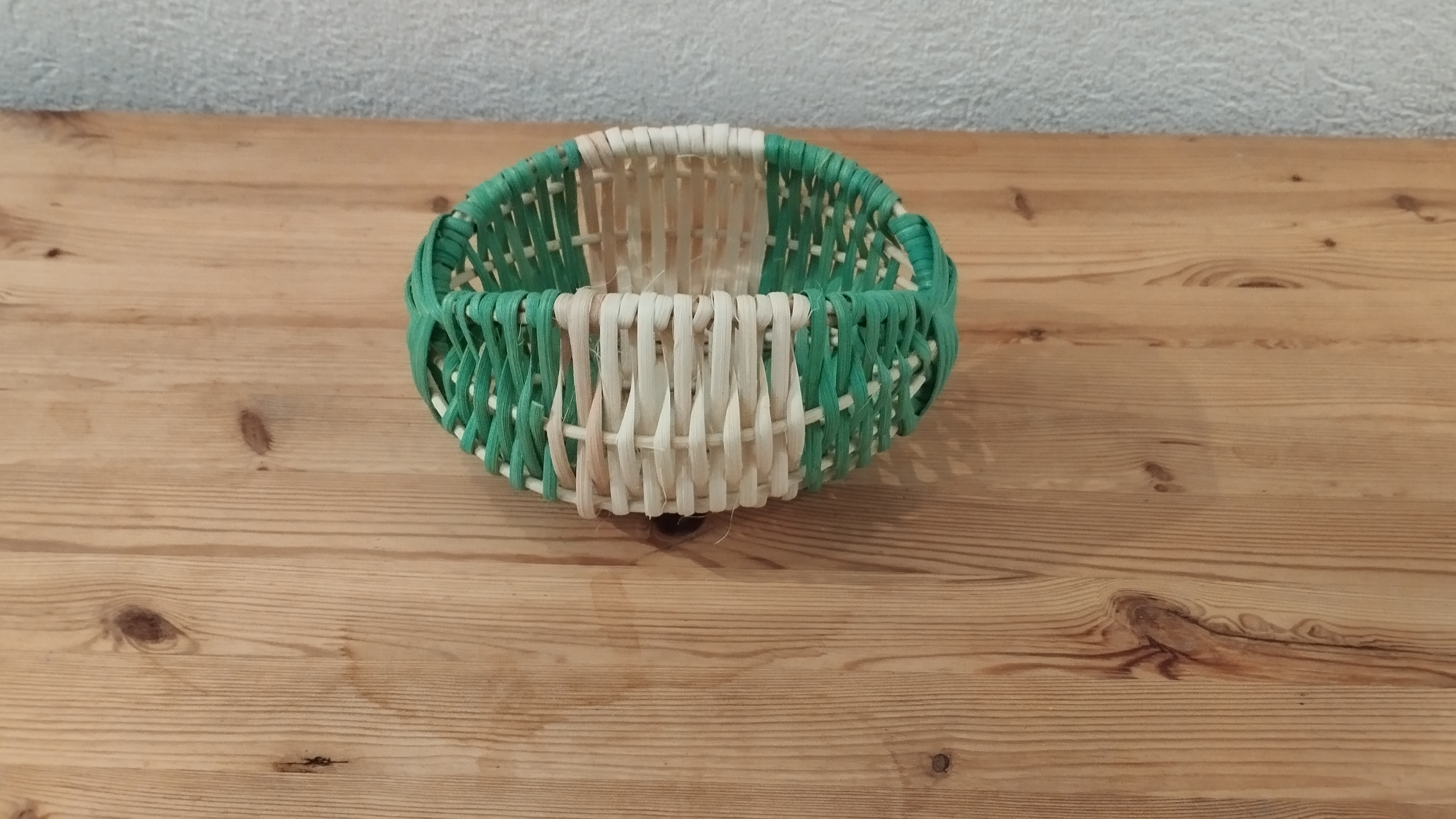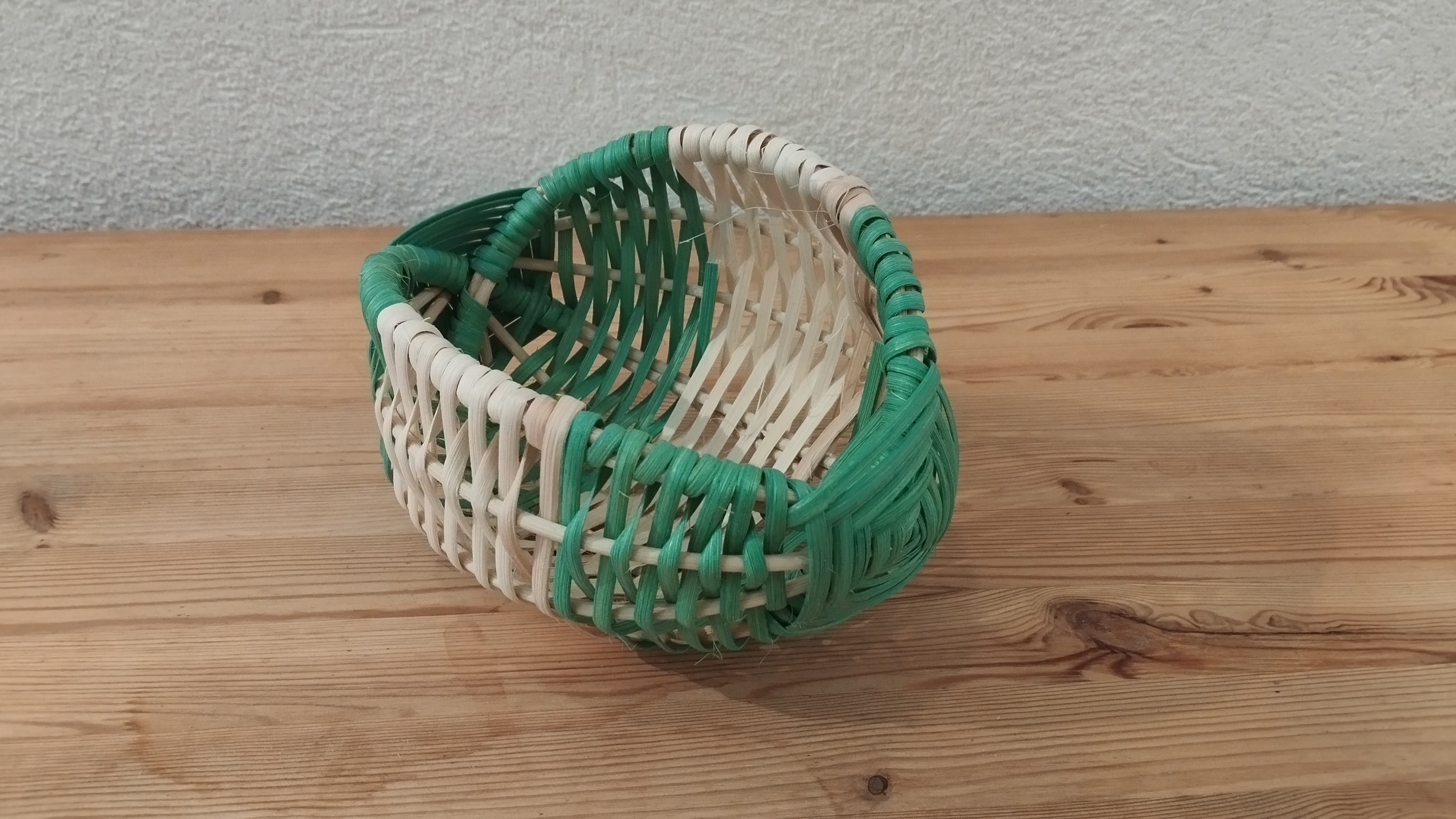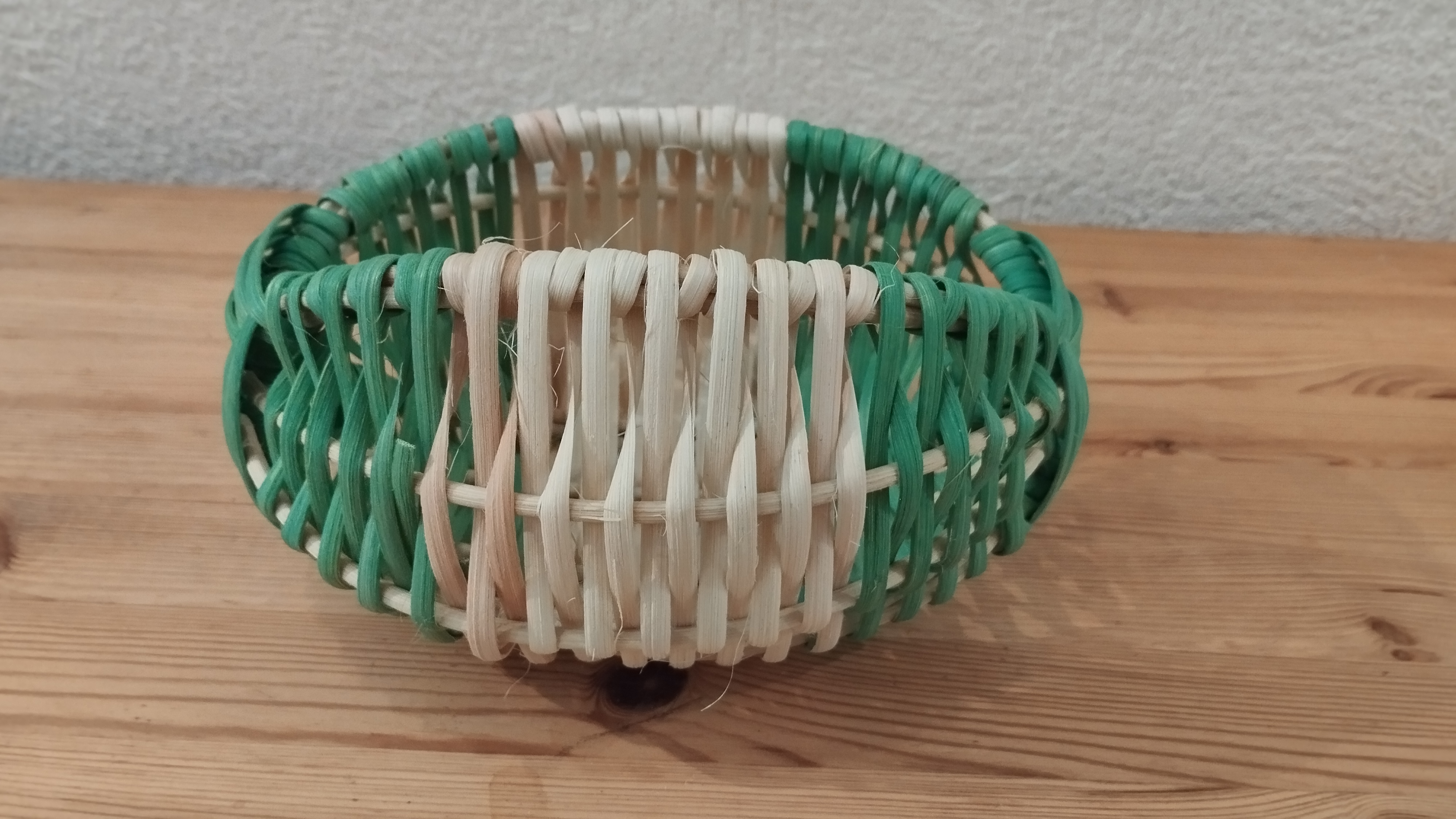 Marie-Alix a réalisé une nouvelle petite corbeille en tressant de la moelle et de l’éclisse de rotin. Pour ce faire, elle a utilisé la technique du panier sur arceaux.