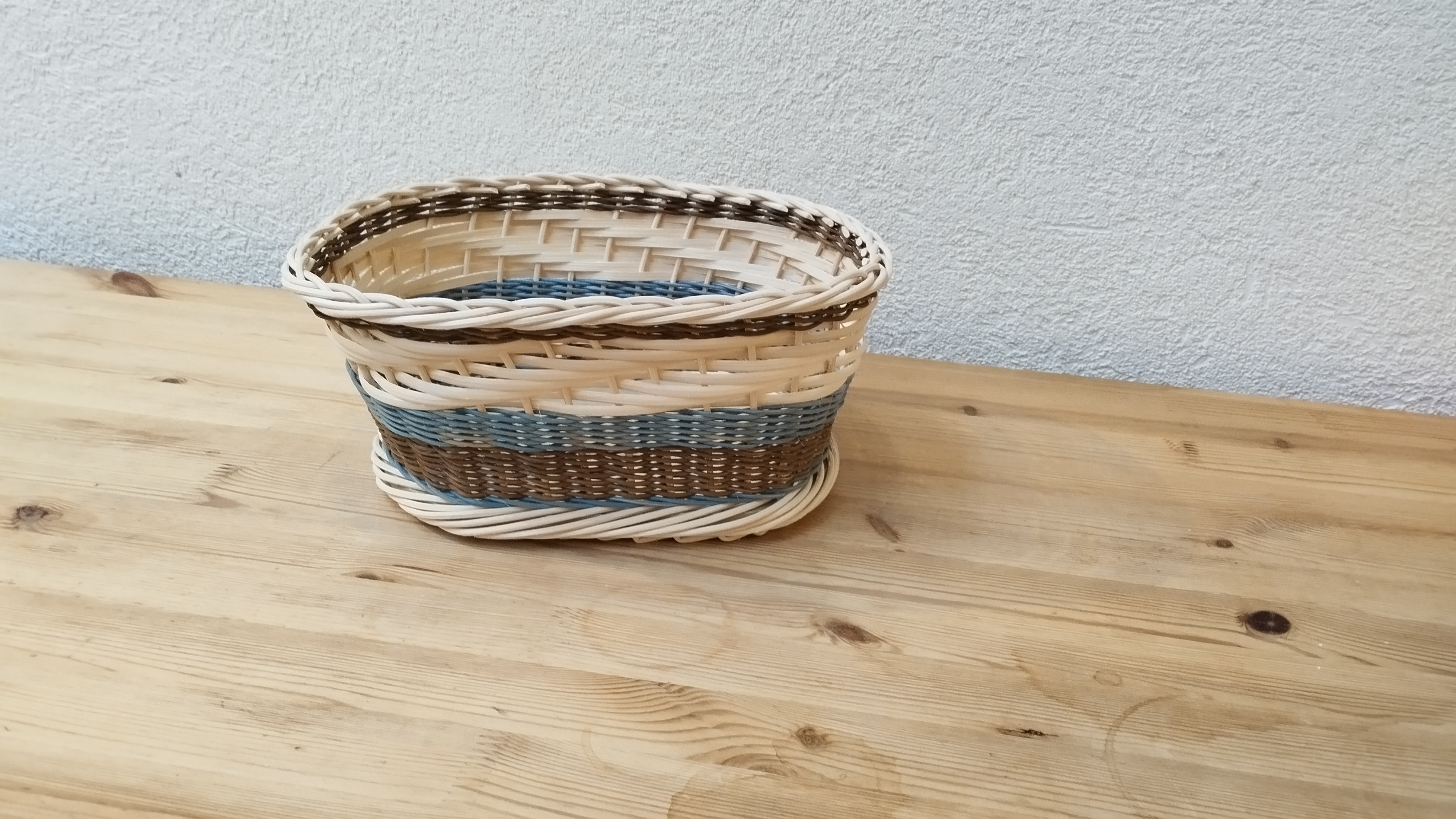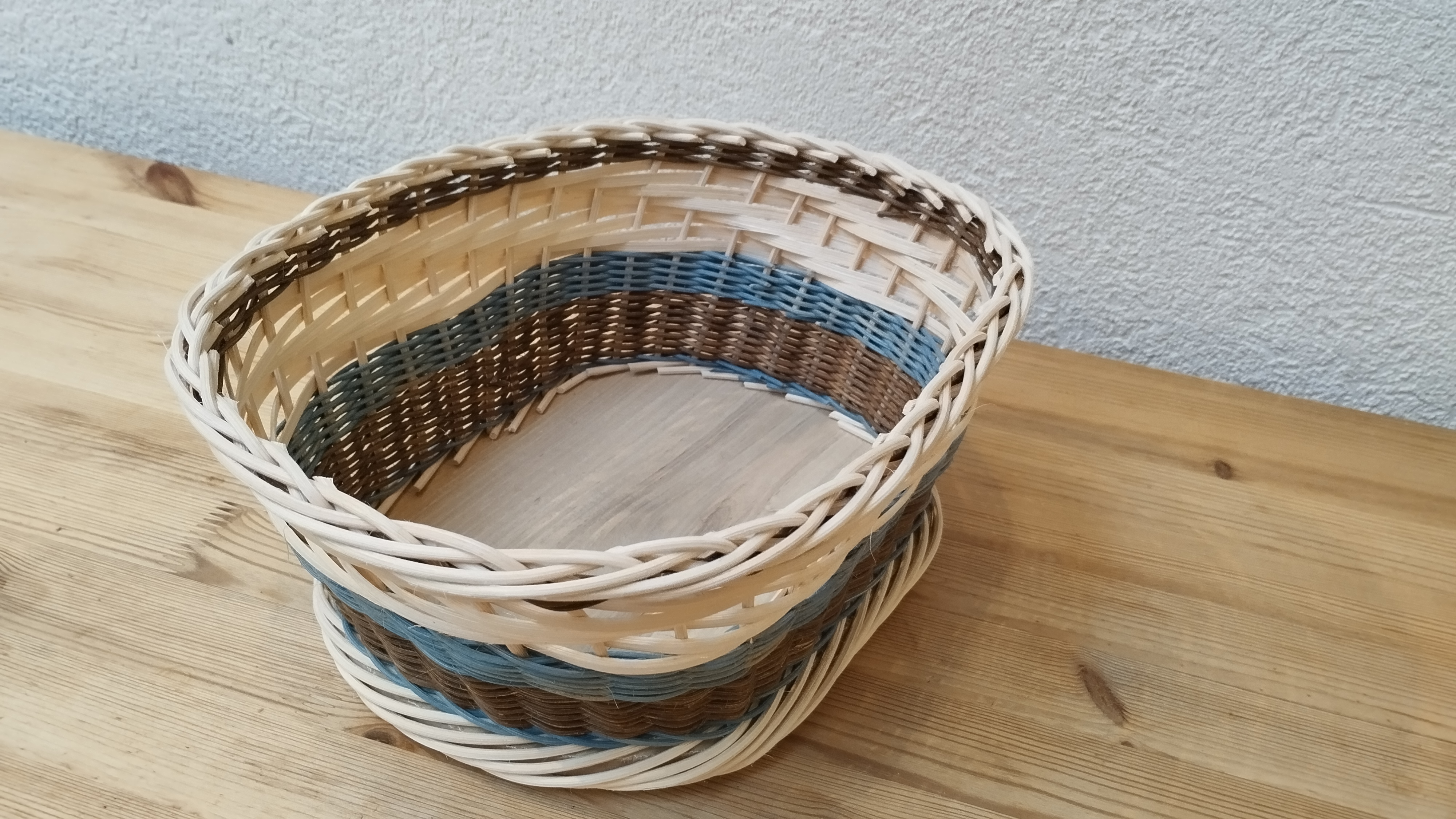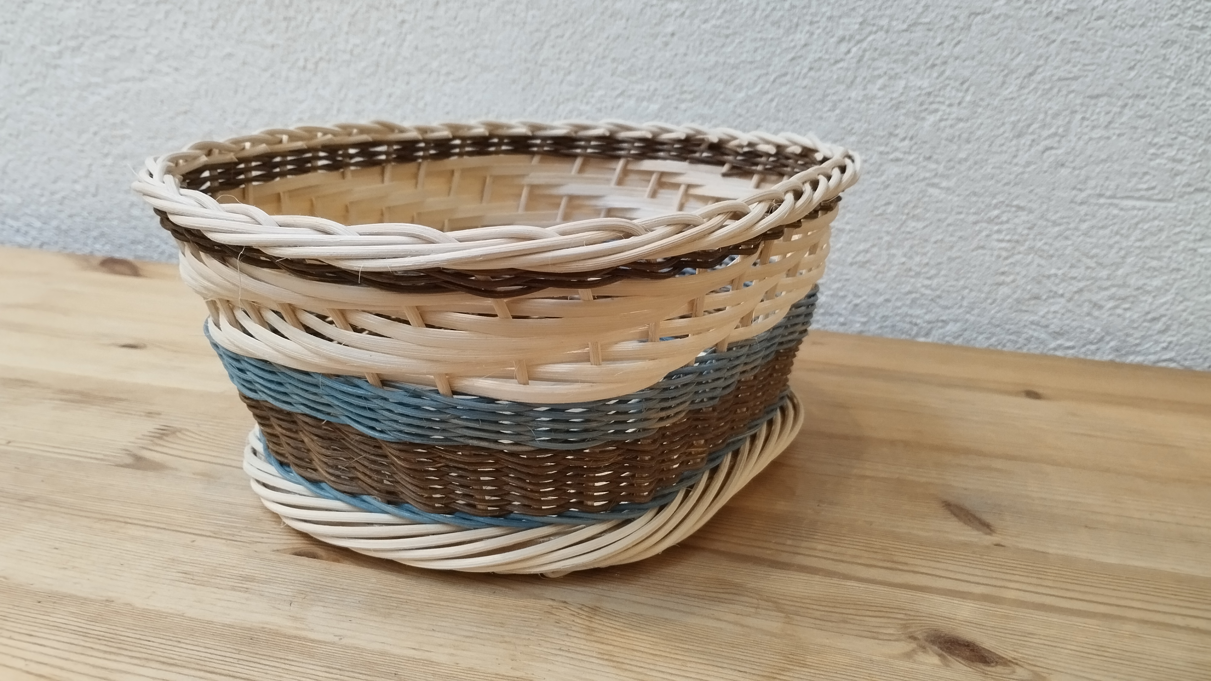 Deuxième réalisation pour Agnès : après une mangeoire à oiseaux cet été, elle a réalisé sa première corbeille en moelle et éclisse de rotin.