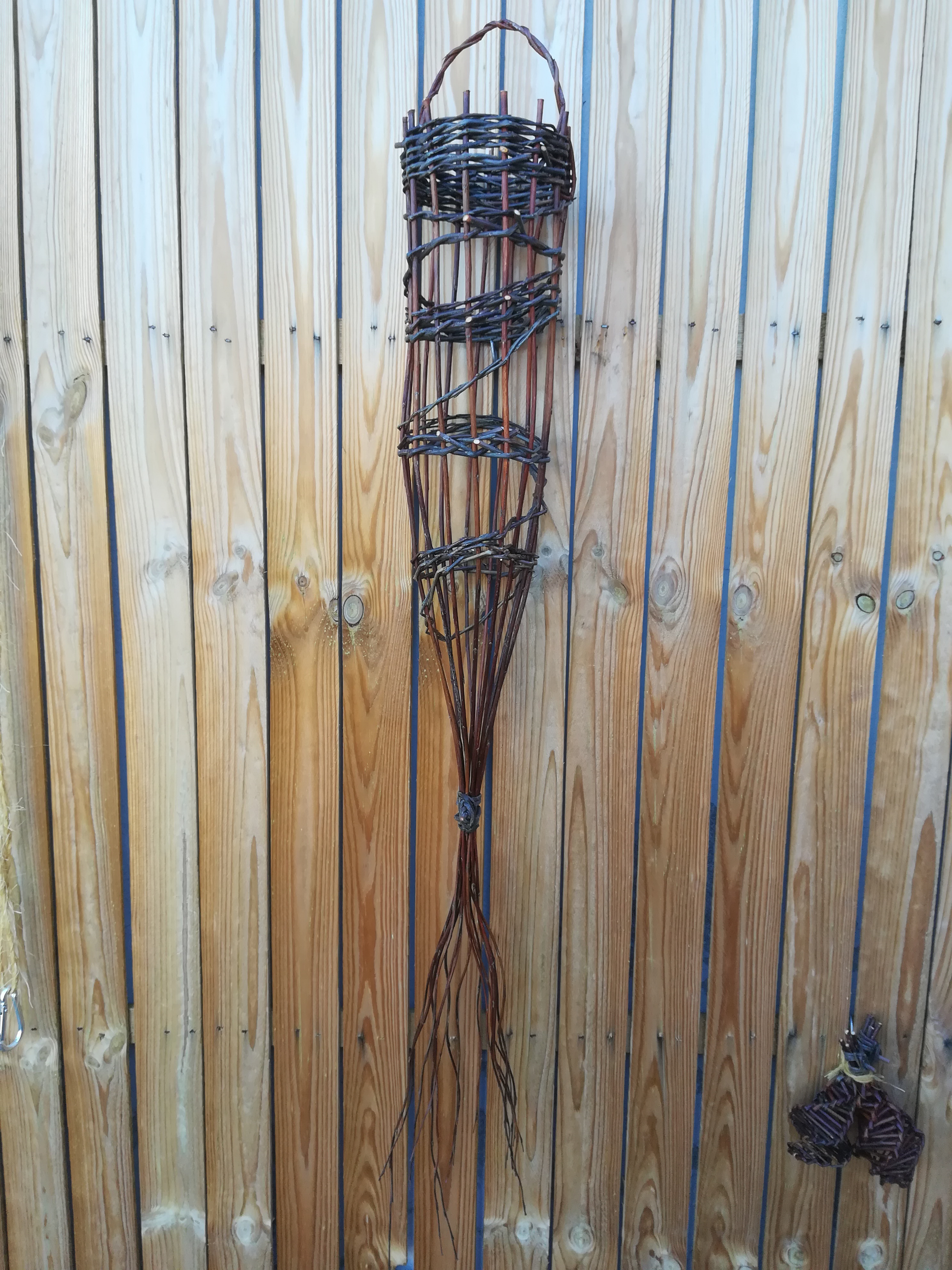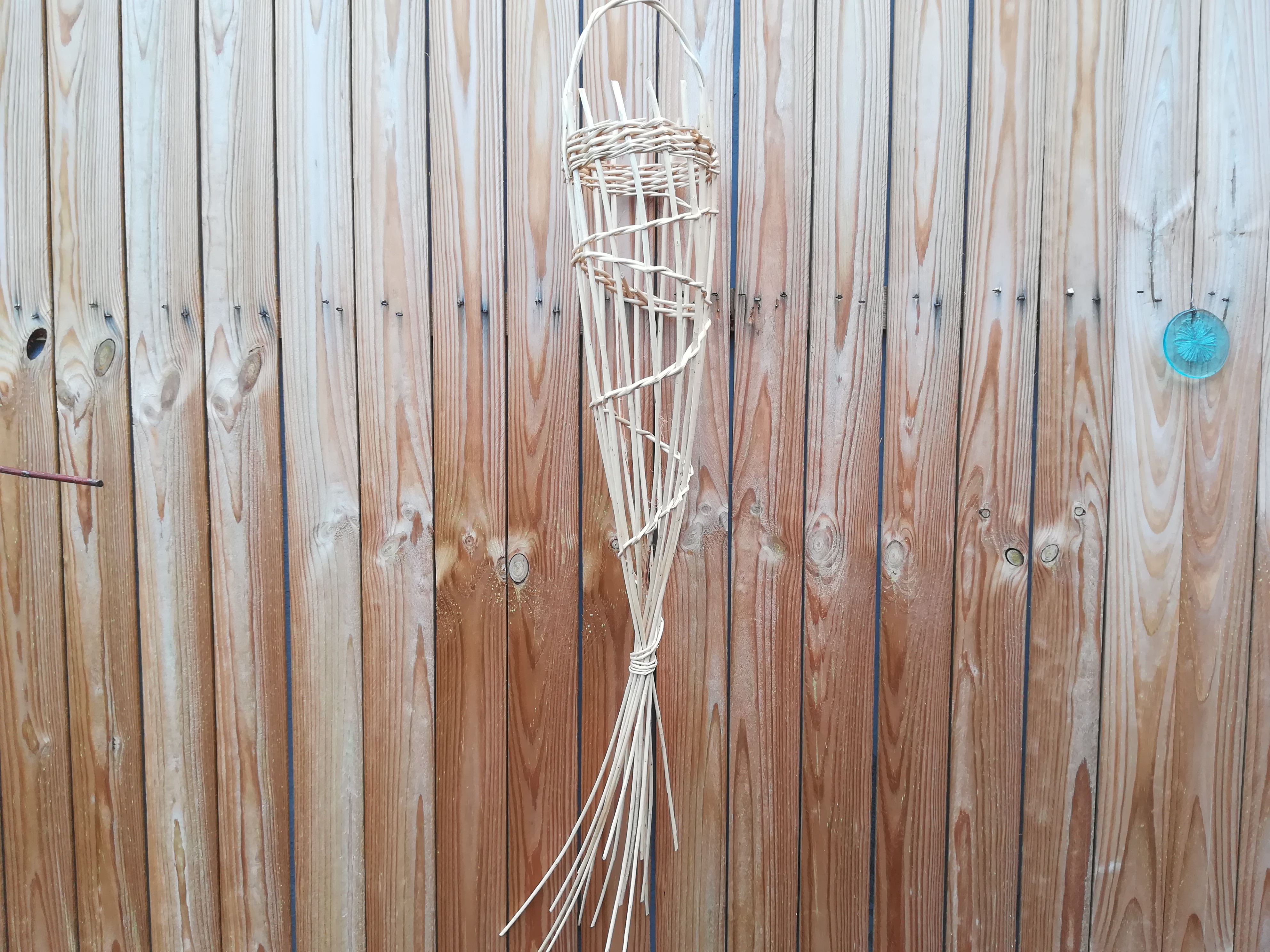 Pour changer, des mangeoires à oiseaux en osier ! Elles peuvent aussi servir dans la maison, pour conserver les oignons par exemple.